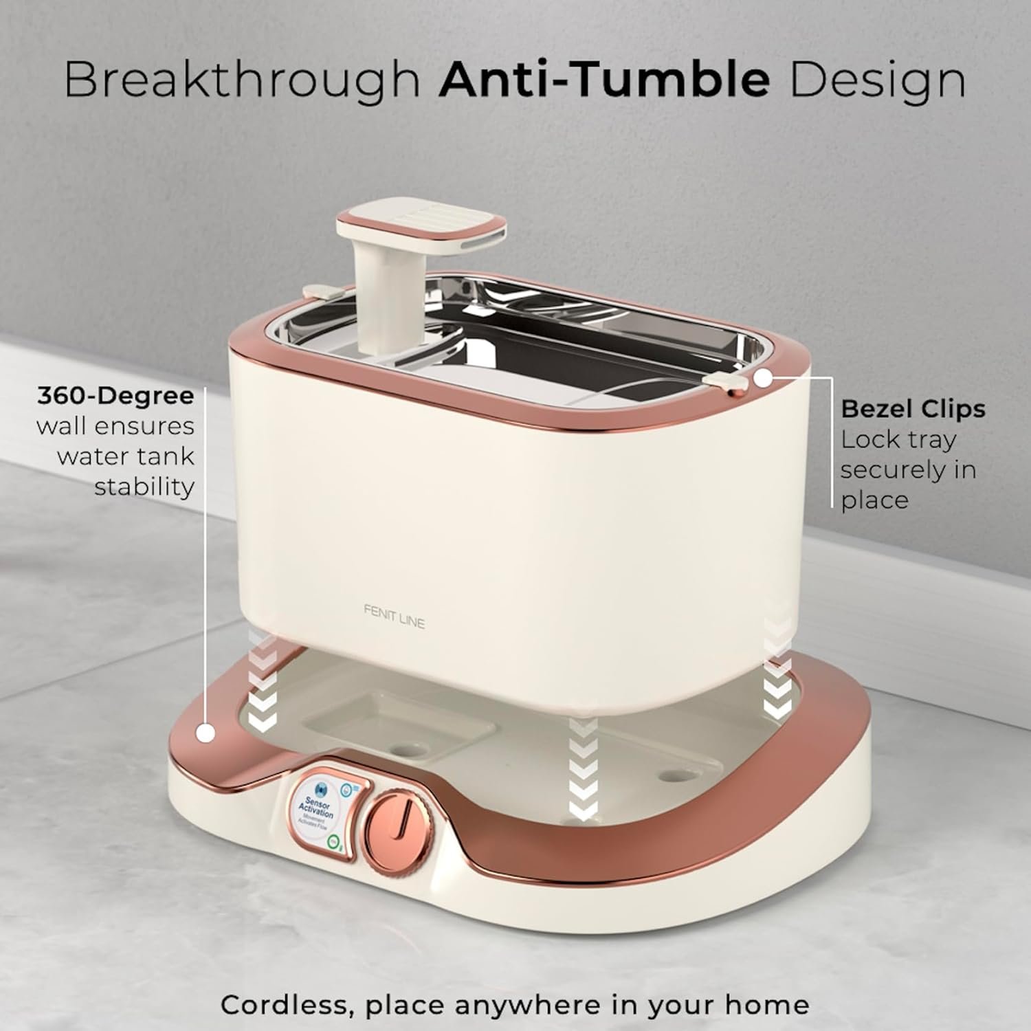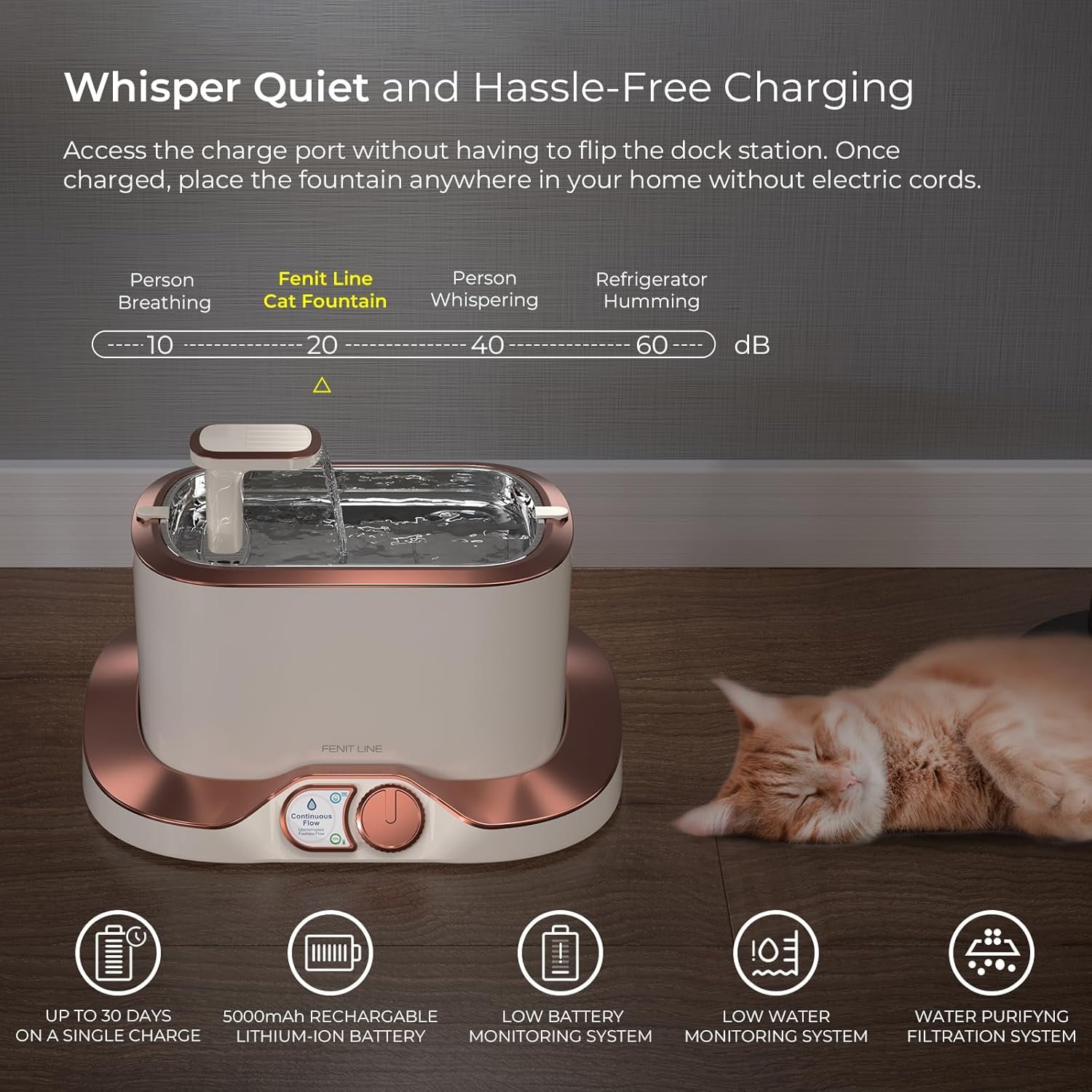 RECHARGEABLE & SECURE: Our Anti-Tumble docking station ensures effortless battery recharging & provides an ultra-stable water fountain for cats. The stable docking caters for active and curious cats. The ideal water fountain for cats inside wireless.