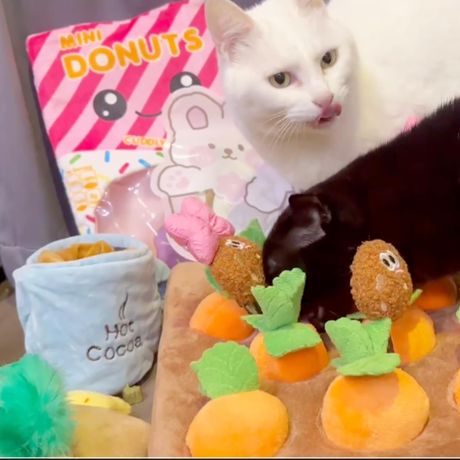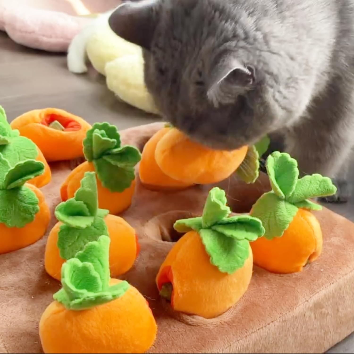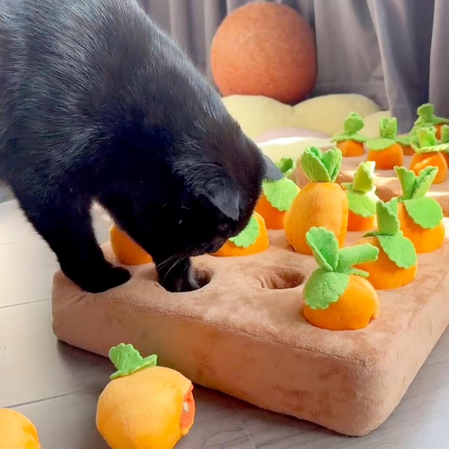 💡VERSATILE TREAT PUZZLE: Place your cat’s favorite treats inside or under the carrots to keep your pet entertained with hours of digging and sniffing fun. Best indoor cat toy for brain and physical stimulation!