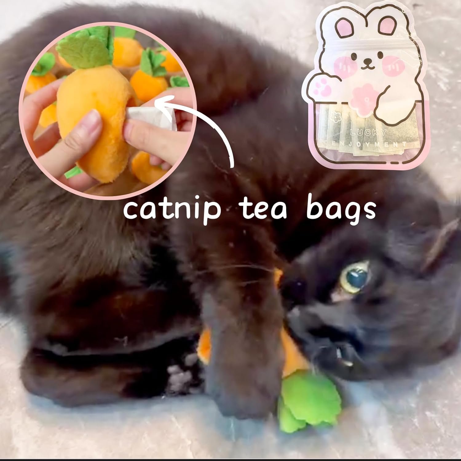 🐱 DIY YOUR OWN CAT’S CATNIP TOY: This toy includes 12 catnip tea bags that can be simply inserted into the plush carrots toy. DIY your cat’s playtime by adjusting the number of catnip tea bags.