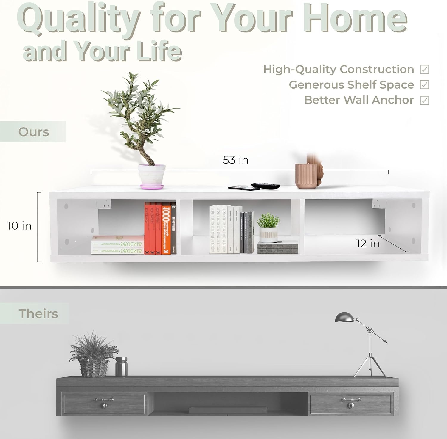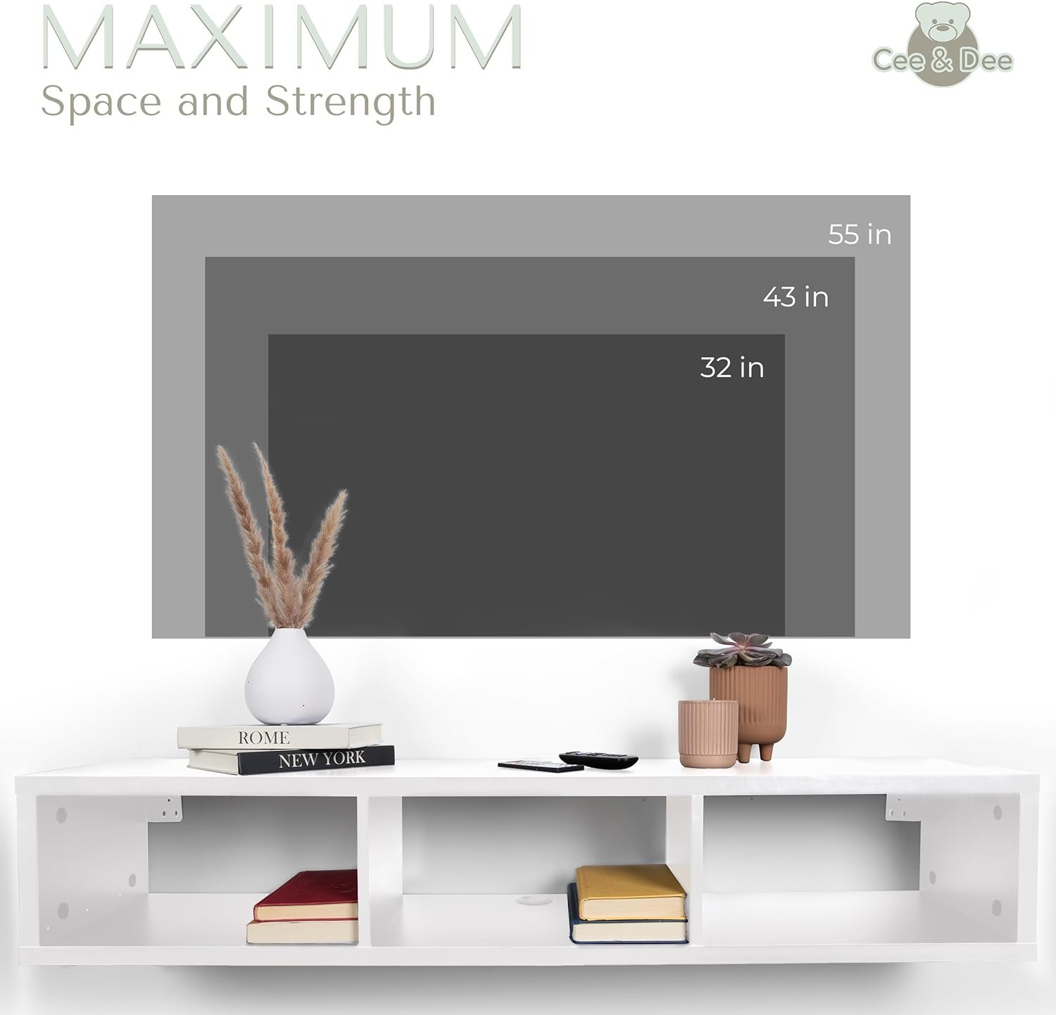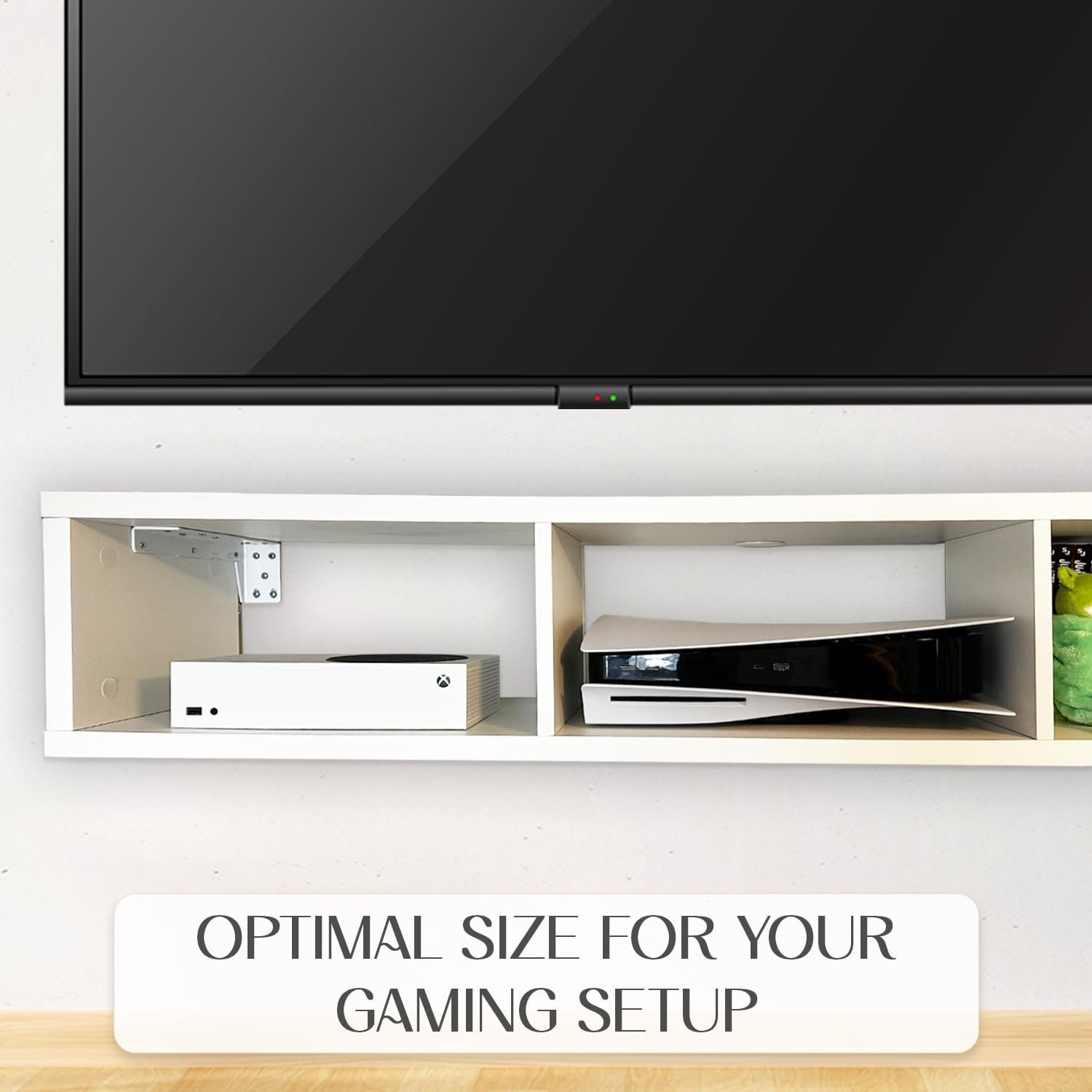 ⚓ Durable and Heavy Duty Mounting Brackets – Experience peace of mind with our floating entertainment shelf’s exceptional quality Heavy Duty Mounting Brackets. Designed to keep your appliances secure and steady, you can trust that your accessories will be safely displayed.