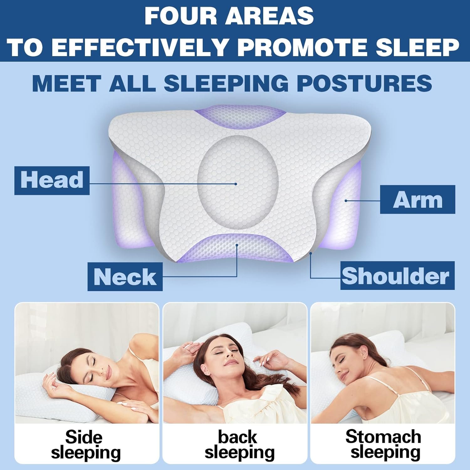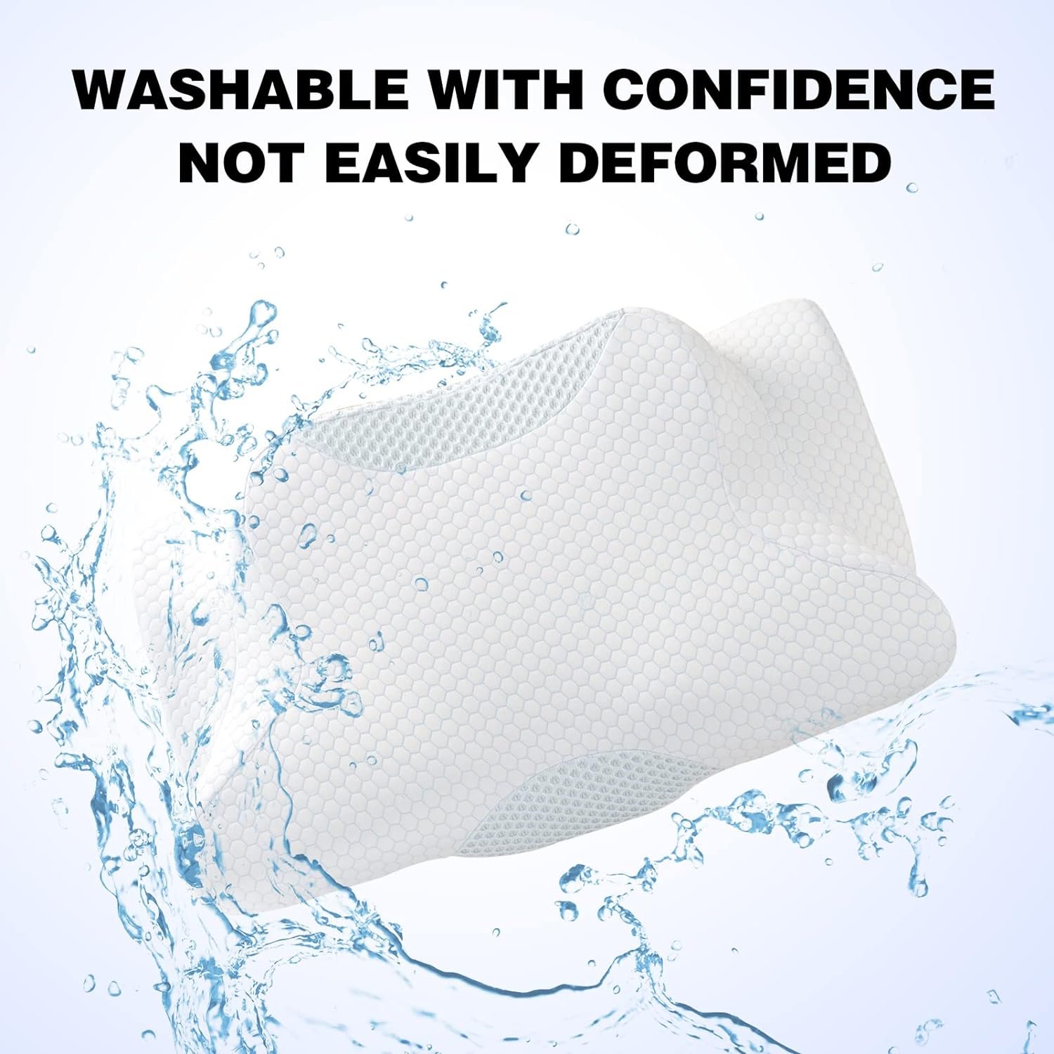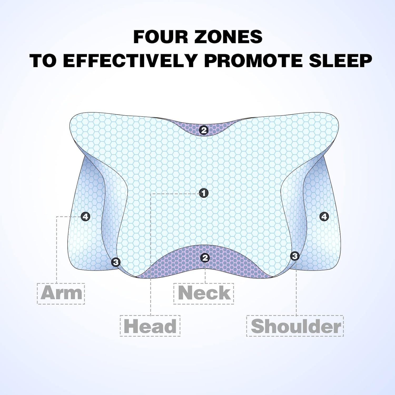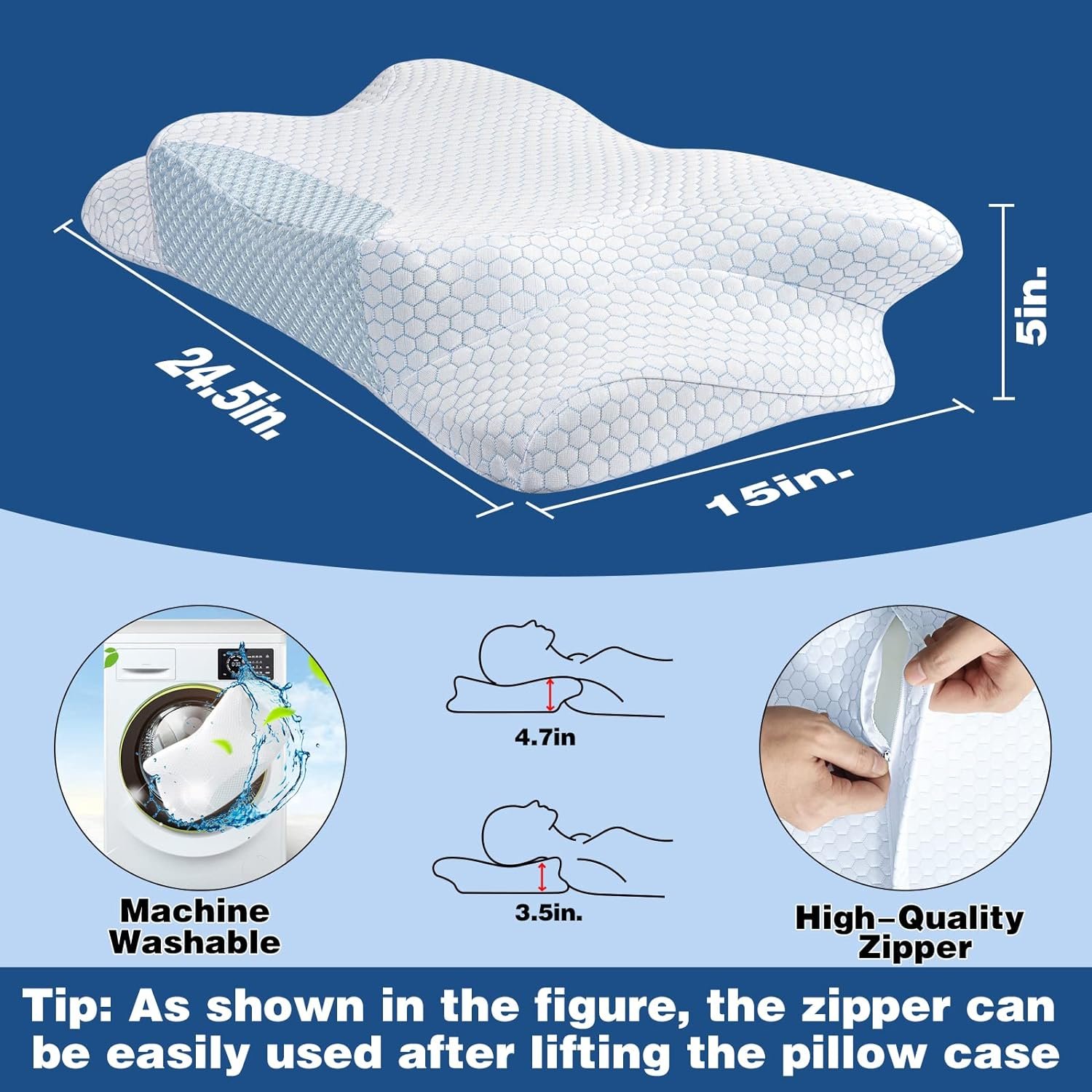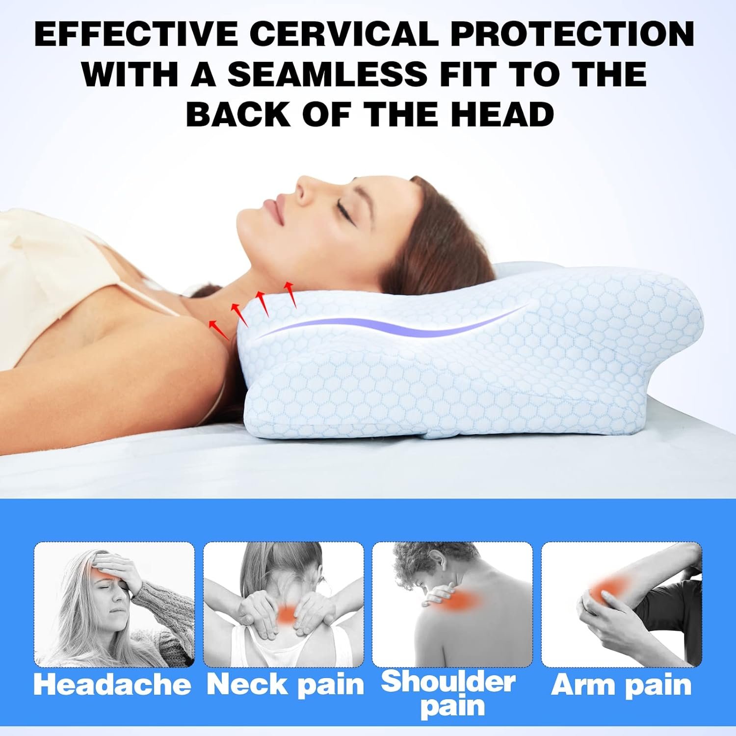 【No Neck Pain While Sleeping】Do you suffer from insomnia all night long? Do you wake up with neck cramps or back pain? Our proven ergonomically designed, contoured memory foam pillow provides perfect support for your head, neck, shoulders and back. The innovative design allows our pillow to perfectly fit the curve of your spine, providing proper support for spinal alignment and allowing you to comfortably switch between positions. So you will wake up relaxed and without any neck and shoulder pain.