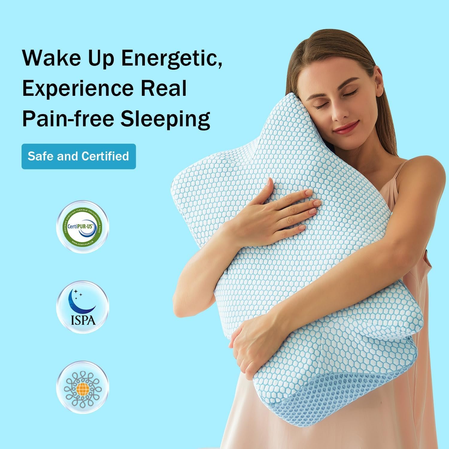【Premium Memory Foam & Firm Support】- Rest assured that our cervical pillows is made of CertiPUR-US certificated (LAB REPORT I.D. : E392-2021-00556001) memory foam pillows. It features 3-5′ slow rebound memory foam which helps reduce your neck, head and shoulder pain
