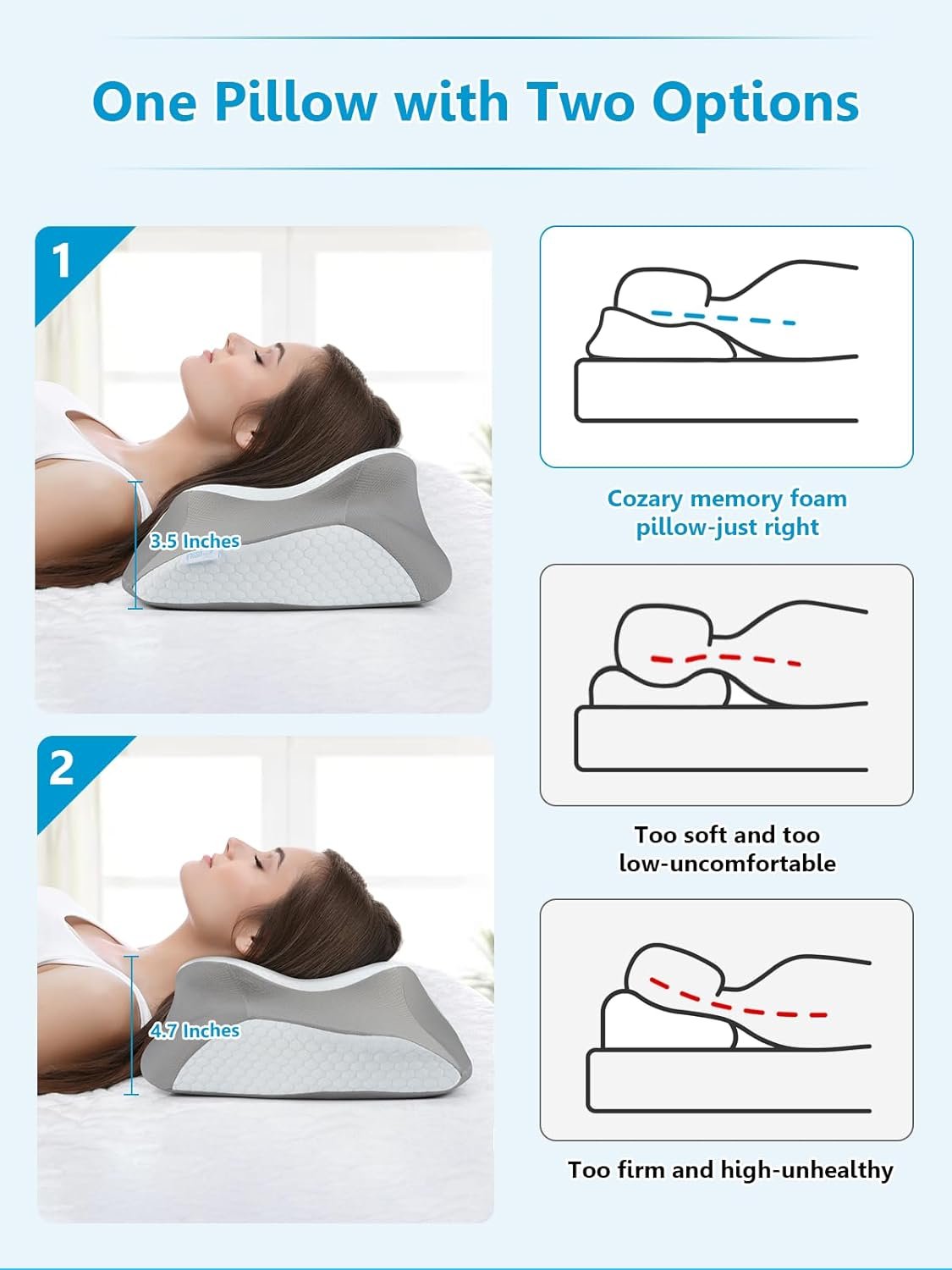 1 Back to Normal Curve 2 Two Different Heights 3 Slow Rebound Memory Foam 4 Machine Washable