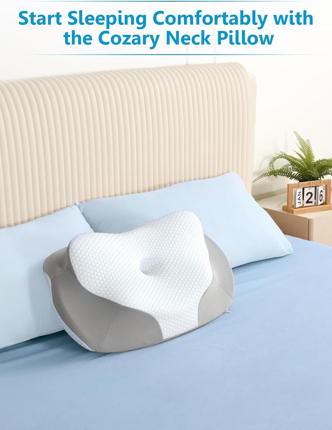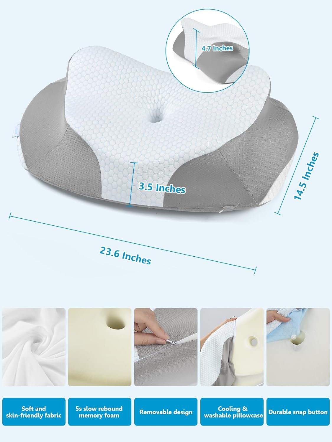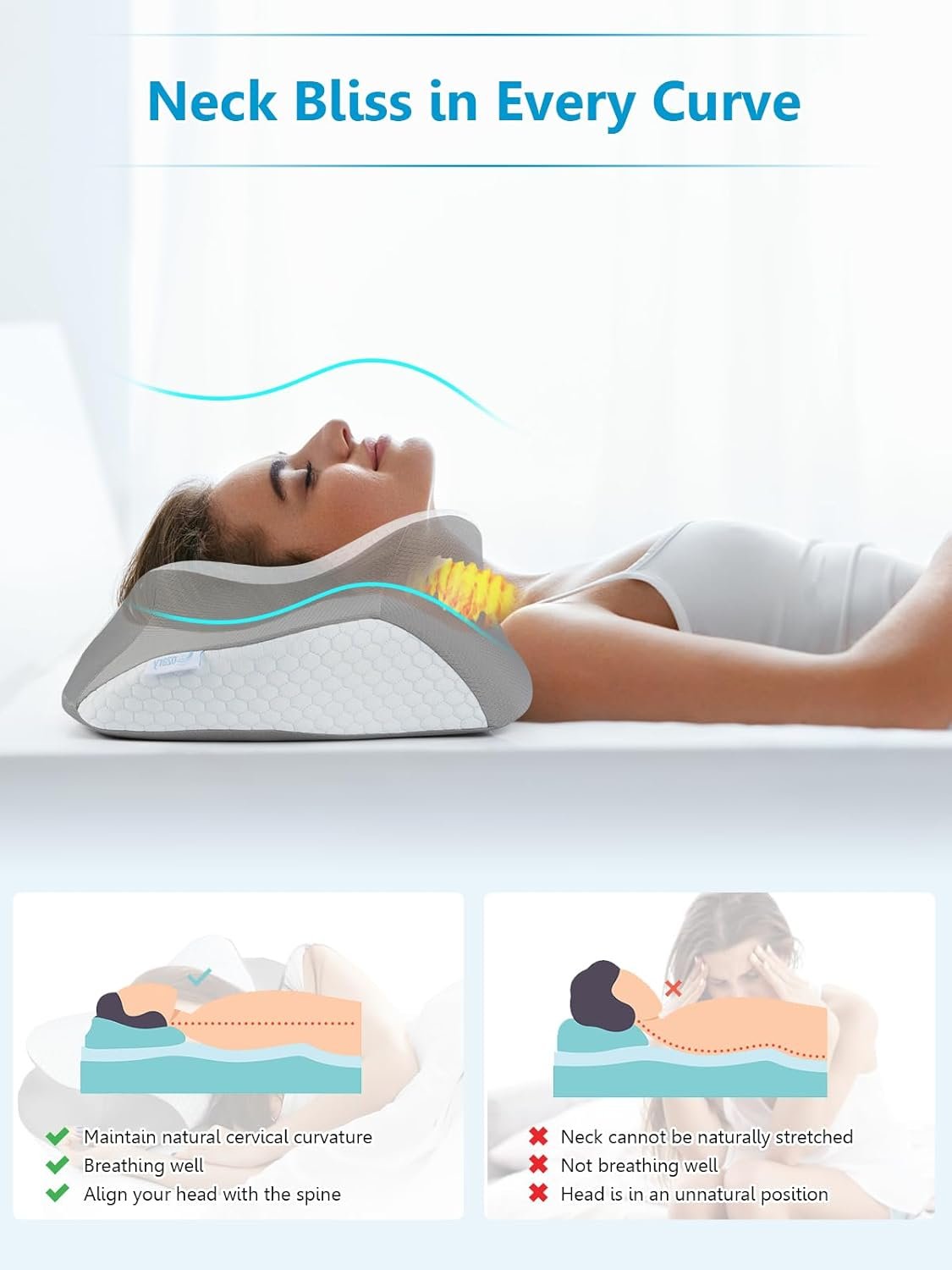 [Slow Rebound Memory Foam Pillow] – The neck support pillow is made of high-density rebound memory foam, which is non-toxic, odorless, and keeps its shape and firmness for long term use. The ergonomic pillow is firm and not too soft for maximum comfort and great relaxation of your head, neck, shoulders and back.