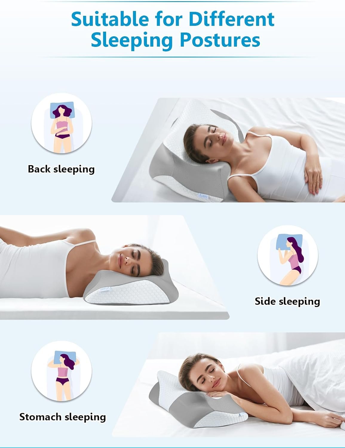[Contour Memory Foam Pillows] – Are you suffering from neck or shoulder pain all night? Our cervical pillow does help to reduce neck and shoulder pain, as well as snoring. This side sleeper pillow is super suitable for all posture sleepers, such as side sleeper, back sleeper and stomach sleeper. The innovative cervical design and memory foam cradles the natural curvature of your neck to improves sleeping quality.