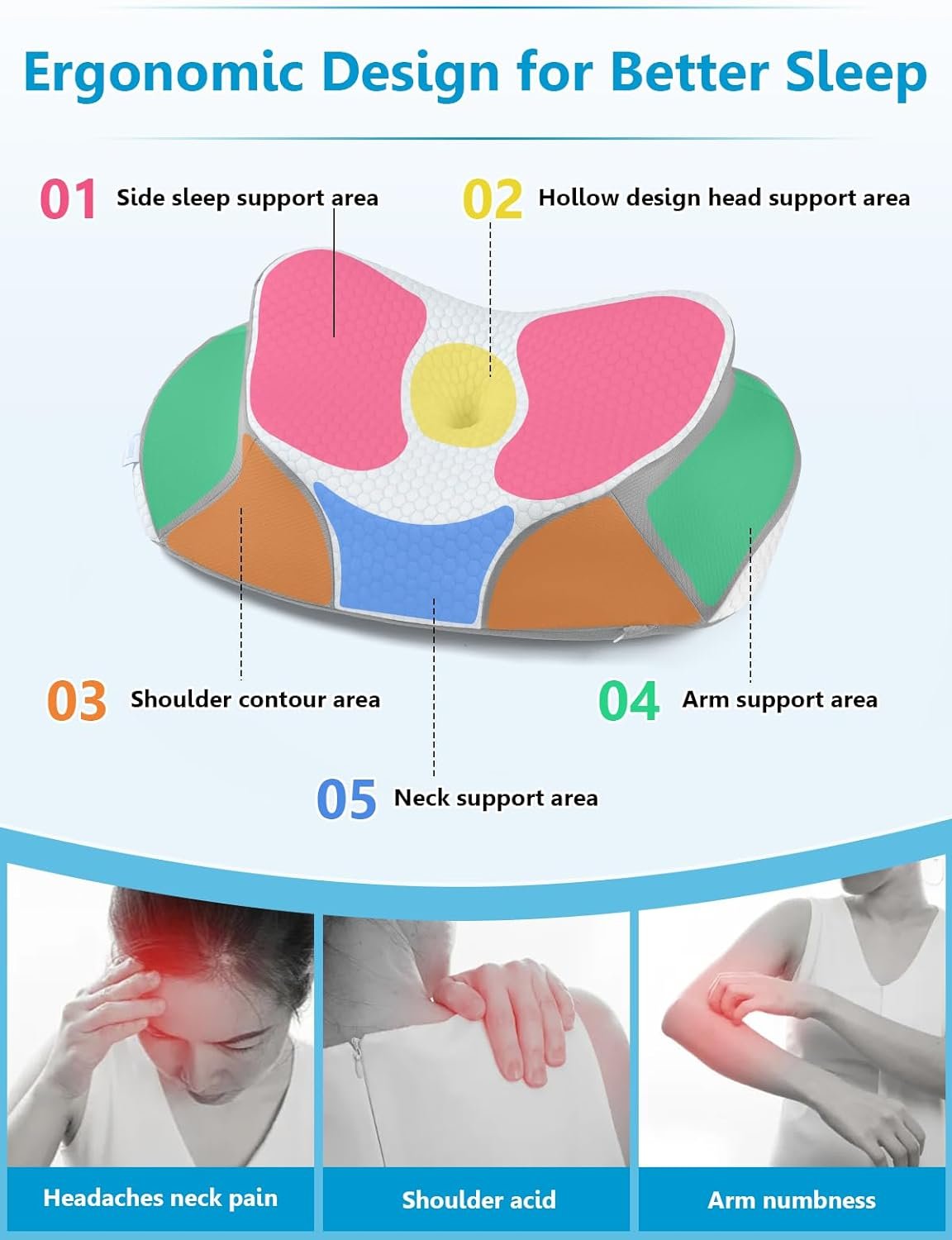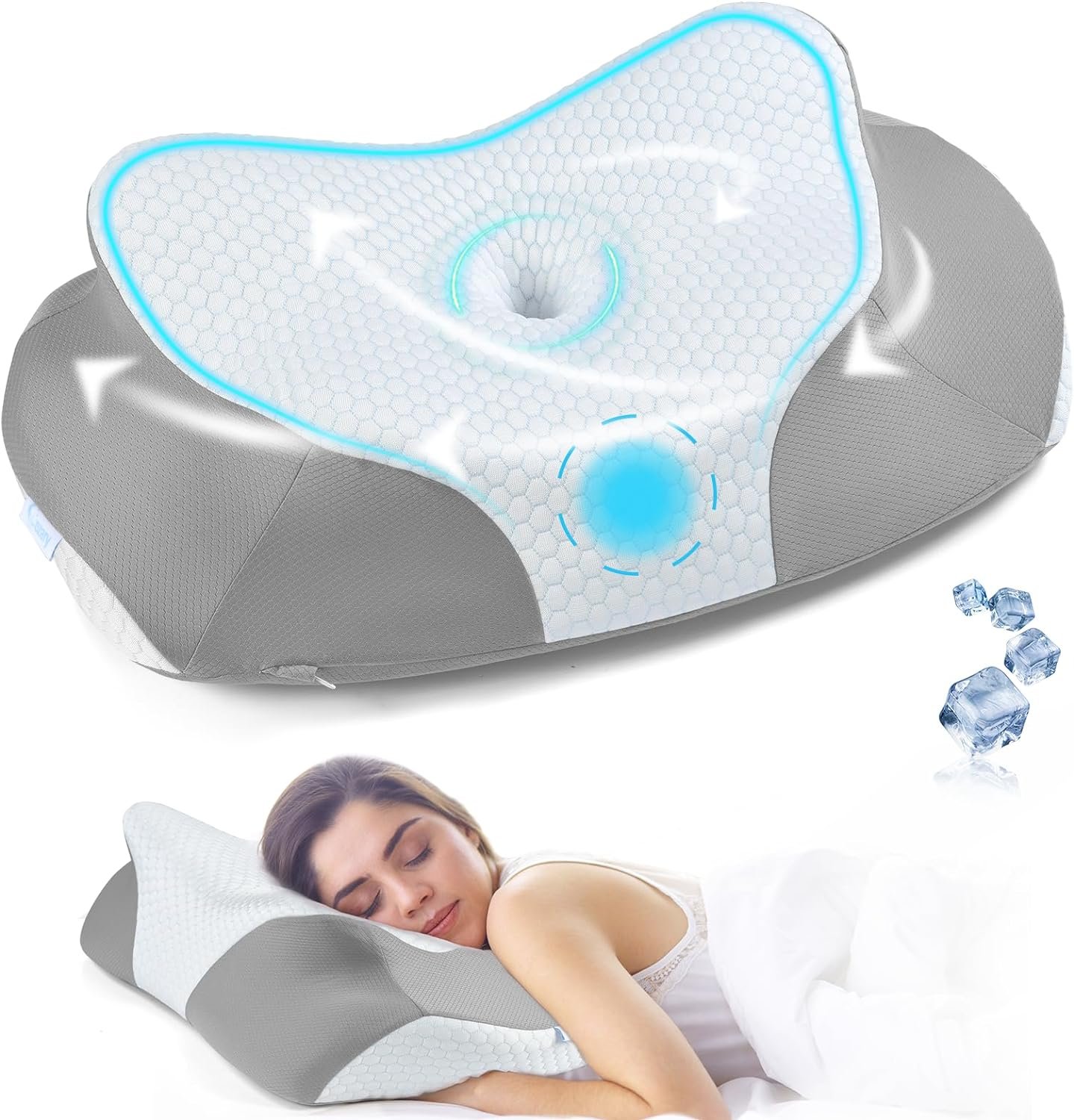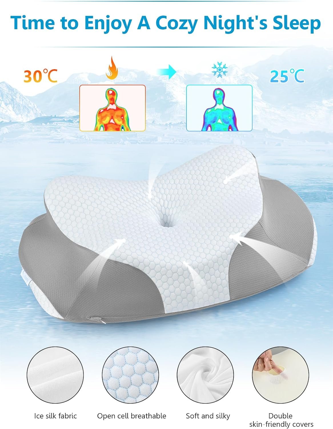 [Breathable & Skin-Friendly & Cooling Pillowcase] – Our pillow comes with a skin-friendly ice silk pillowcase that reduces heat and wicks away moisture, keeping you cool and refreshed during the night. The memory foam pillows for sider sleeping with removable and washable pillowcase adopts unique butterfly design. There are specific grooves that allows your arms to go under for comfortable sleep. The skin-friendly pillowcase is removable and machine washable, gives you the comfortable and healthy sleep!