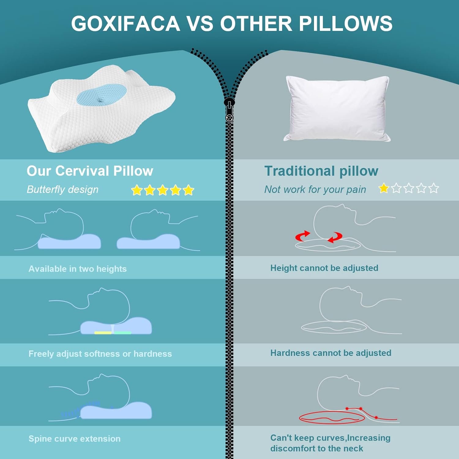 🎀【𝐄𝐫𝐠𝐨𝐧𝐨𝐦𝐢𝐜 𝐏𝐢𝐥𝐥𝐨𝐰𝐬 𝐟𝐨𝐫 𝐒𝐥𝐞𝐞𝐩𝐢𝐧𝐠】Ergonomically shaped, neck contour, central cavity and adjustable height significantly relieve neck pain and reduce snoring. This side sleeping pillow combines the advantages of traditional bed pillows and contour pillows, with an ergonomic pillow design that provides excellent support for your head, neck and shoulders. Ensure adequate support and spinal alignment throughout the night, effectively relieving stress and muscle tension.