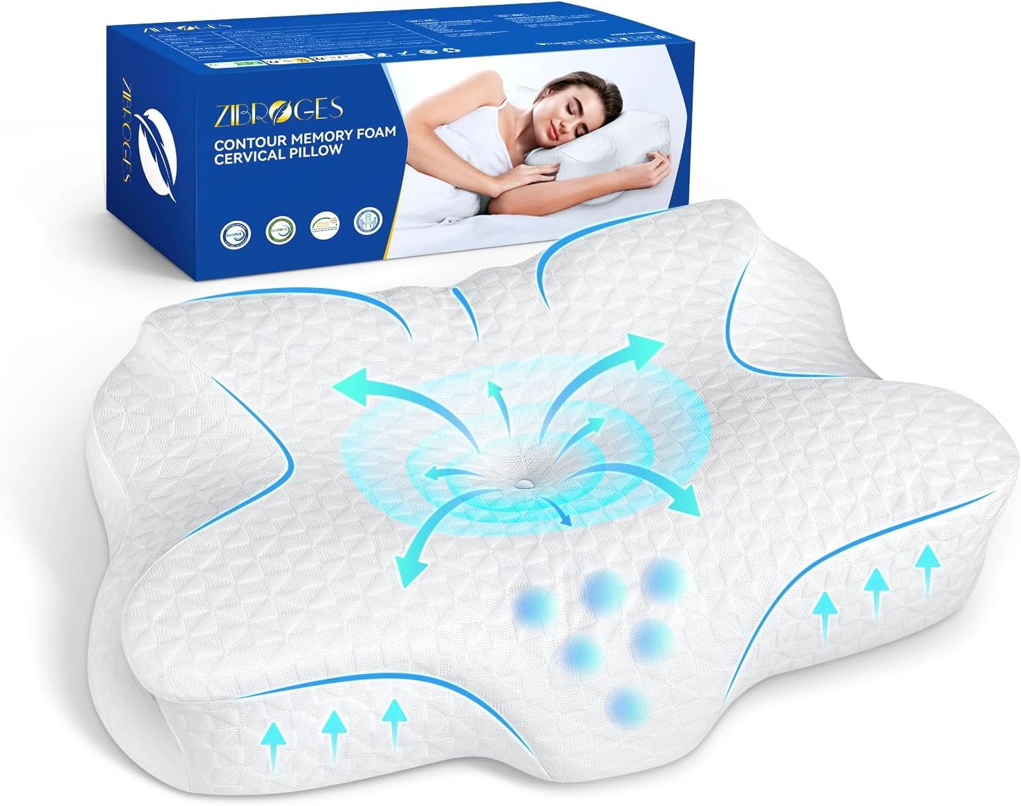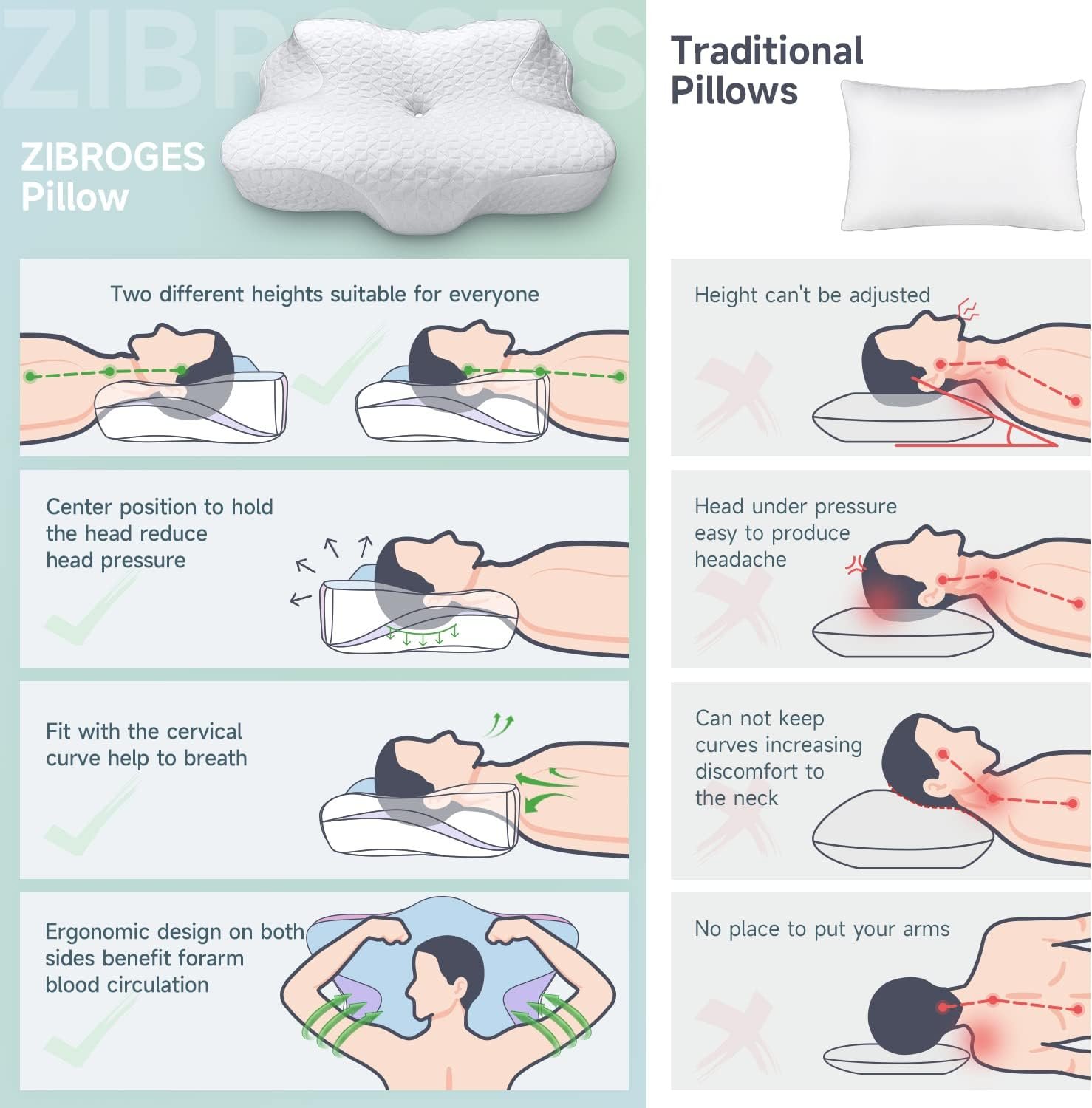 Neck Pain While Sleeping? – Our tried and tested contour design perfectly supports your head, neck, shoulders, and back. The innovative ergonomic design of the ZIBROGES Memory Foam Pillow for Neck Head Shoulder Pain Relief Sleeping Supports Your Head, fits naturally to the curve of your spine, providing proper support for spinal alignment, reducing neck pressure to a minimum, and works for all sleep positions. Our cervical pillow can help alleviate common pain such as neck and back pain!