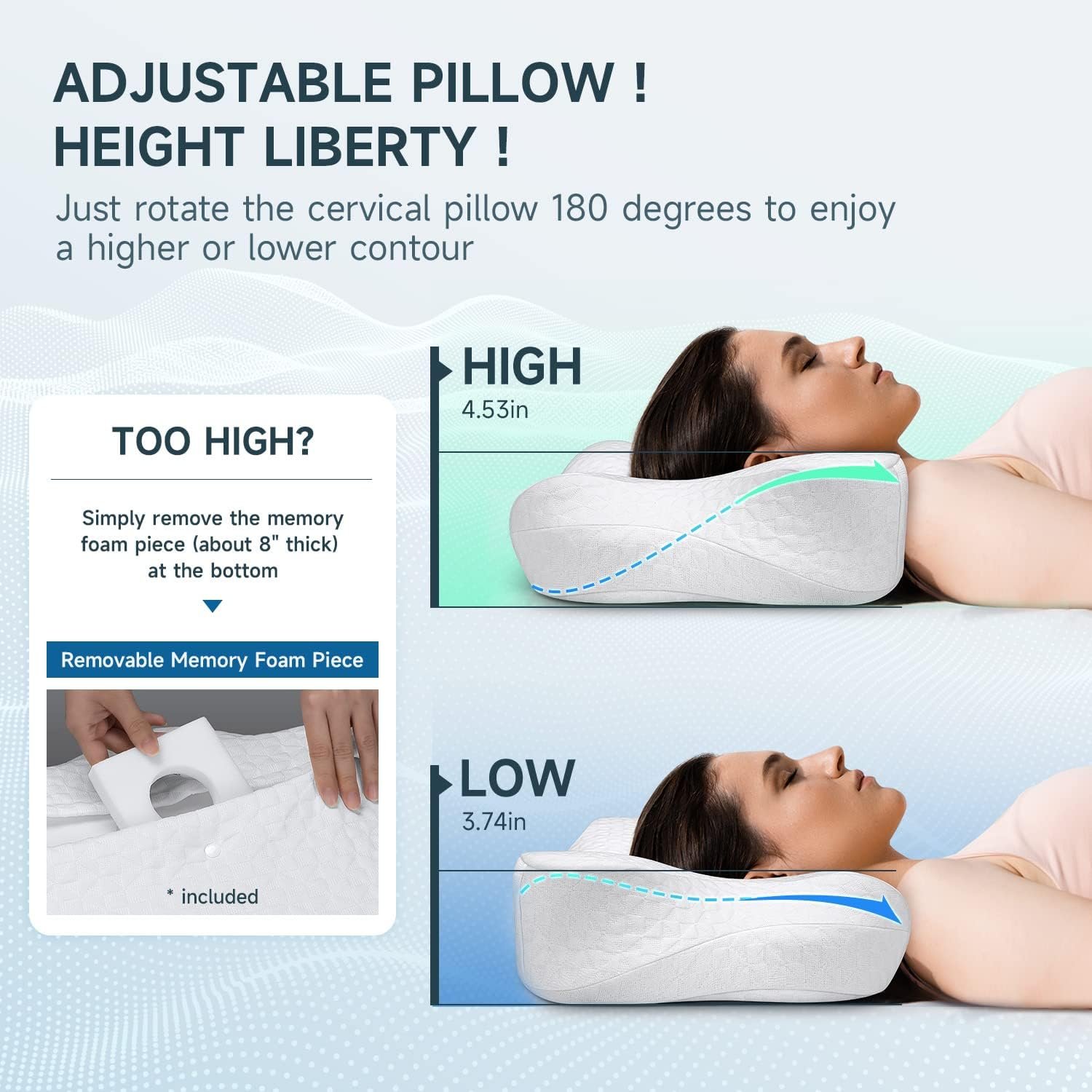100% Slow Rebounds High Quality Memory Foam – Cervical pillow is made of high-quality CertiPUR US & Oeko Tex certified rebound memory foam, and a unique nature molded foam design. When you lie on your back or side, the high-quality texture is soft but supportive, and after long-term use, the neck pillow will not become flat, lose its shape or density. You can be customized to fit your sleeping by removing or adding a layer of cushioning (0.8 inches thick).