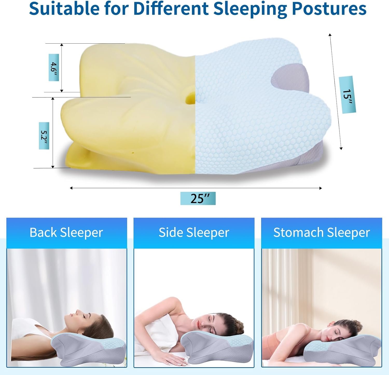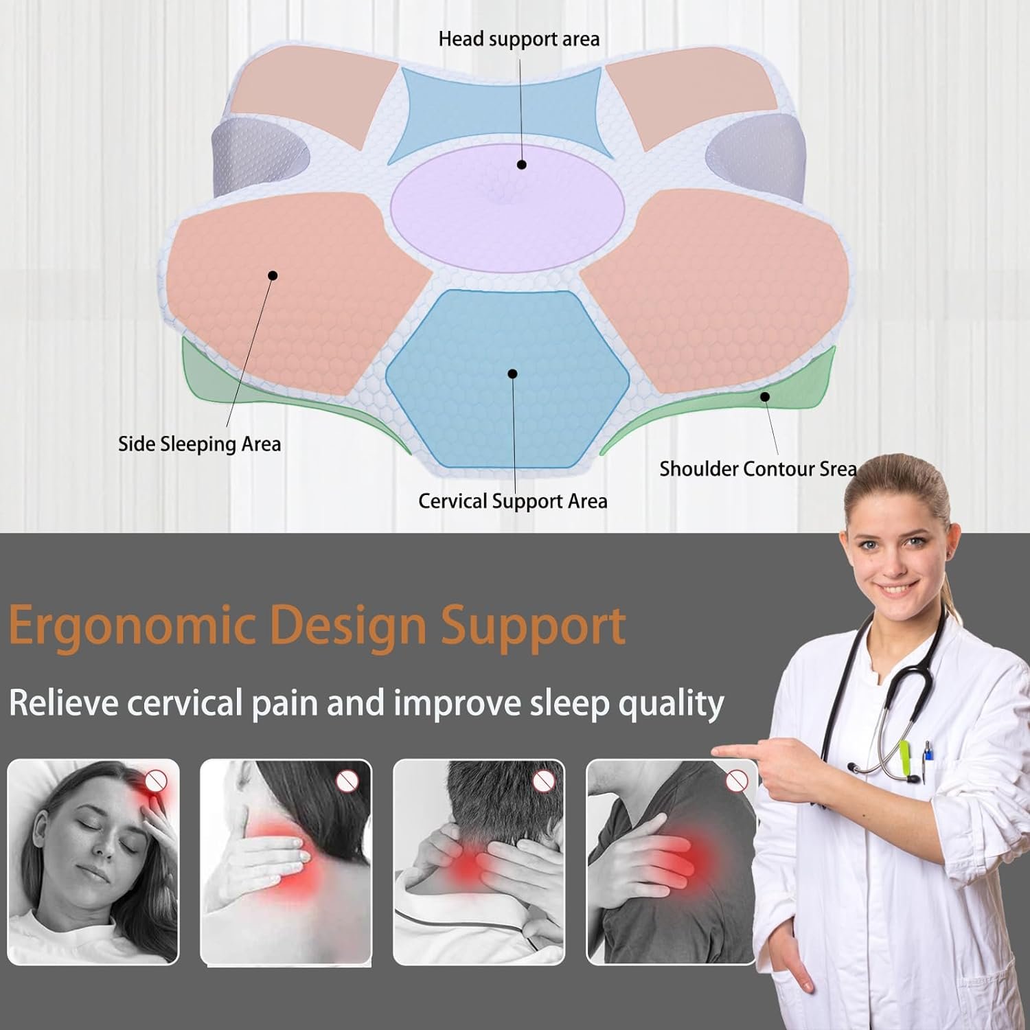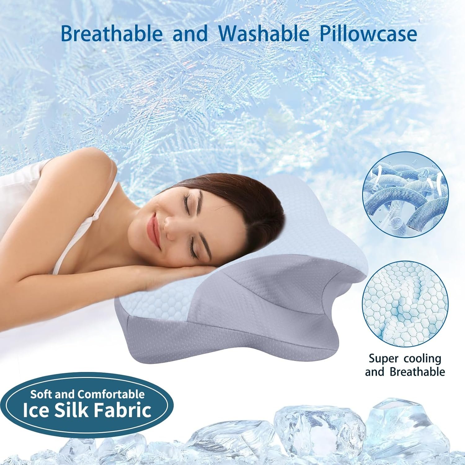 【True Cooling Pillow】: Cervical neck pillow is made of customized cooling ice silk fabric, containing 50% ice silk material, combined with skin-friendly, breathable and soft air layer fabric. This cervical pillows for side sleepers can reduce your heat in few minutes. In summer, it will allow you to have a cool night, and a refreshing, comfortable dry morning without any stickiness!