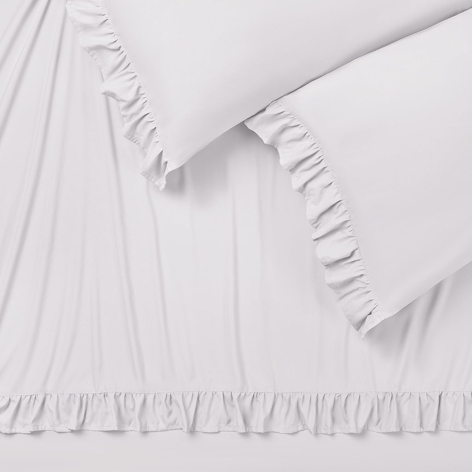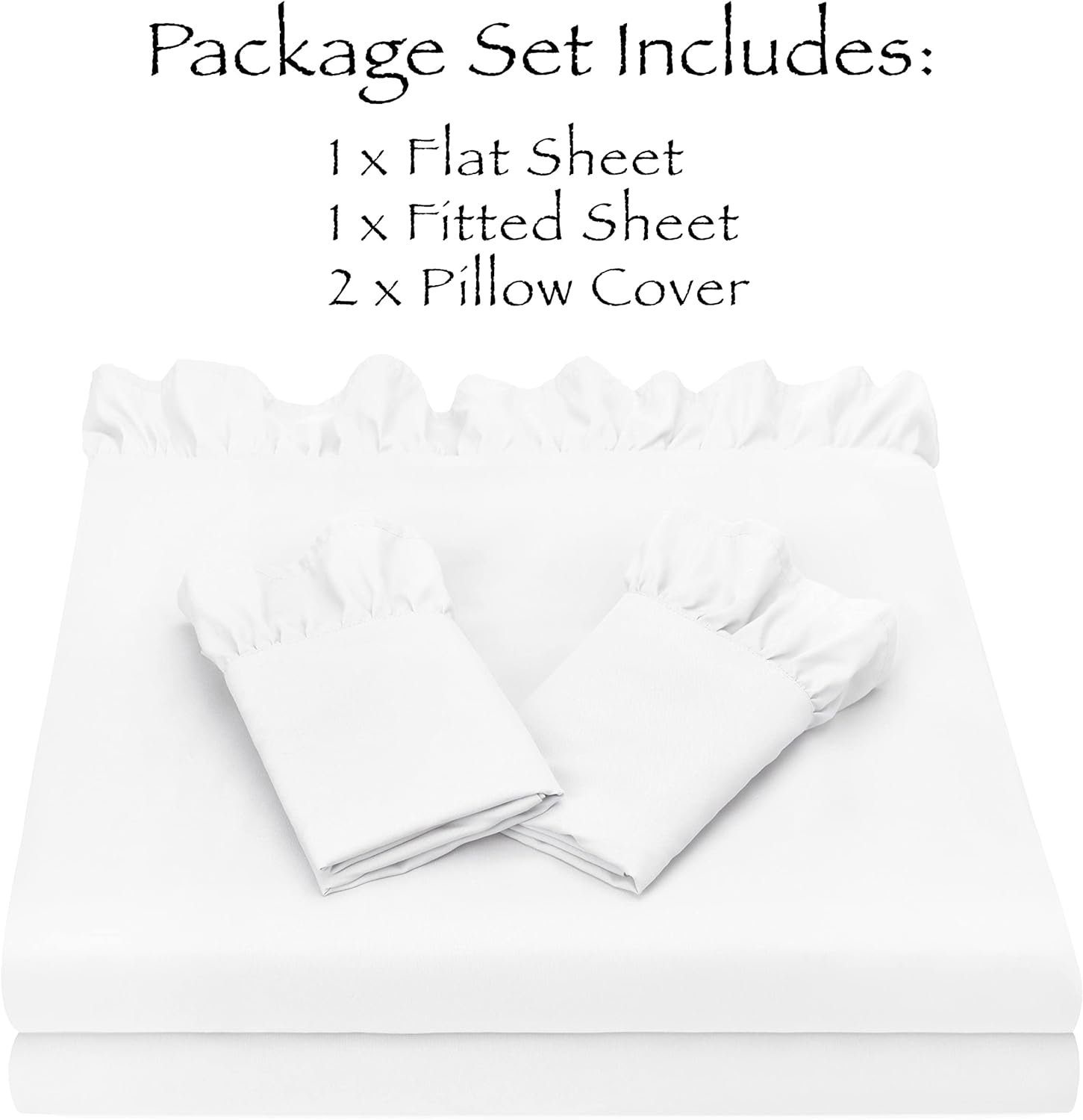 Stylish Ruffle Accent: This ruffle sheet set with matching pillowcases can add an elegant and sophisticated textured look to your existing bedroom décor. Its super soft double brushed microfiber material can also help provide a cozy and comfortable sleep.