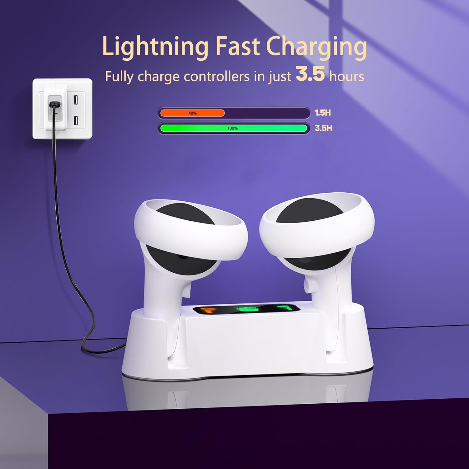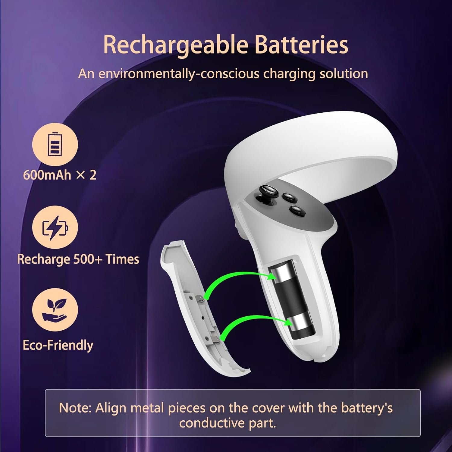 【Overcharge Protection】Built-in smart chip protects the Oculus Quest 2 controllers from overcharging, overheating and short circuit