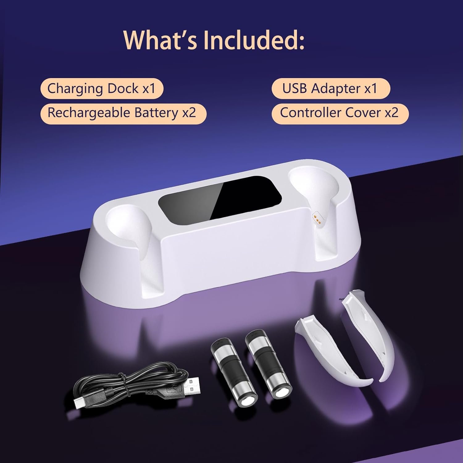 Charging Dock for Oculus Quest 2 Controllers, VR Accessories Charger Station with 2 Rechargeable Batteries, Fast Charging Station Set with Type-C Charging Cable