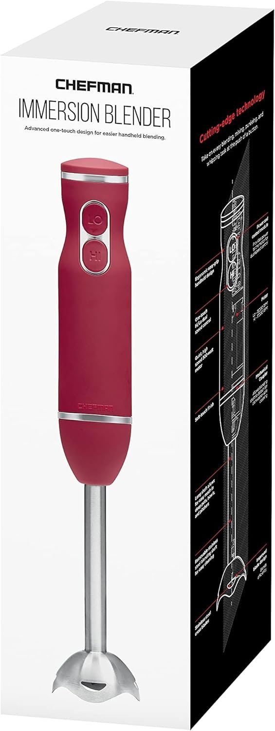 Chefman Immersion Stick Hand Blender with Stainless Steel Blades, Powerful Electric Ice Crushing 2-Speed Control Handheld Food Mixer, Purees, Smoothies, Shakes, Sauces & Soups, Red