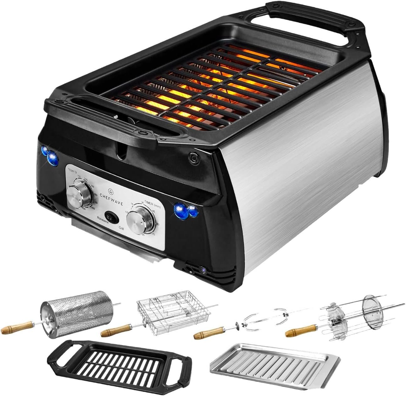 Premium Indoor Electric Smokeless Grill: Enjoy all the fun of an outdoor BBQ indoors! Infrared heating technology produces 80% less smoke than other electric grills, resulting in a virtually smokeless product that grills to perfection.