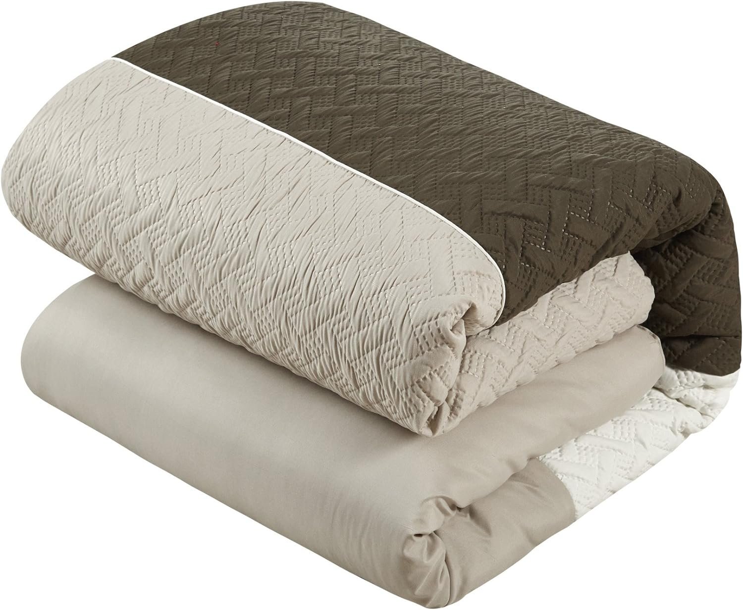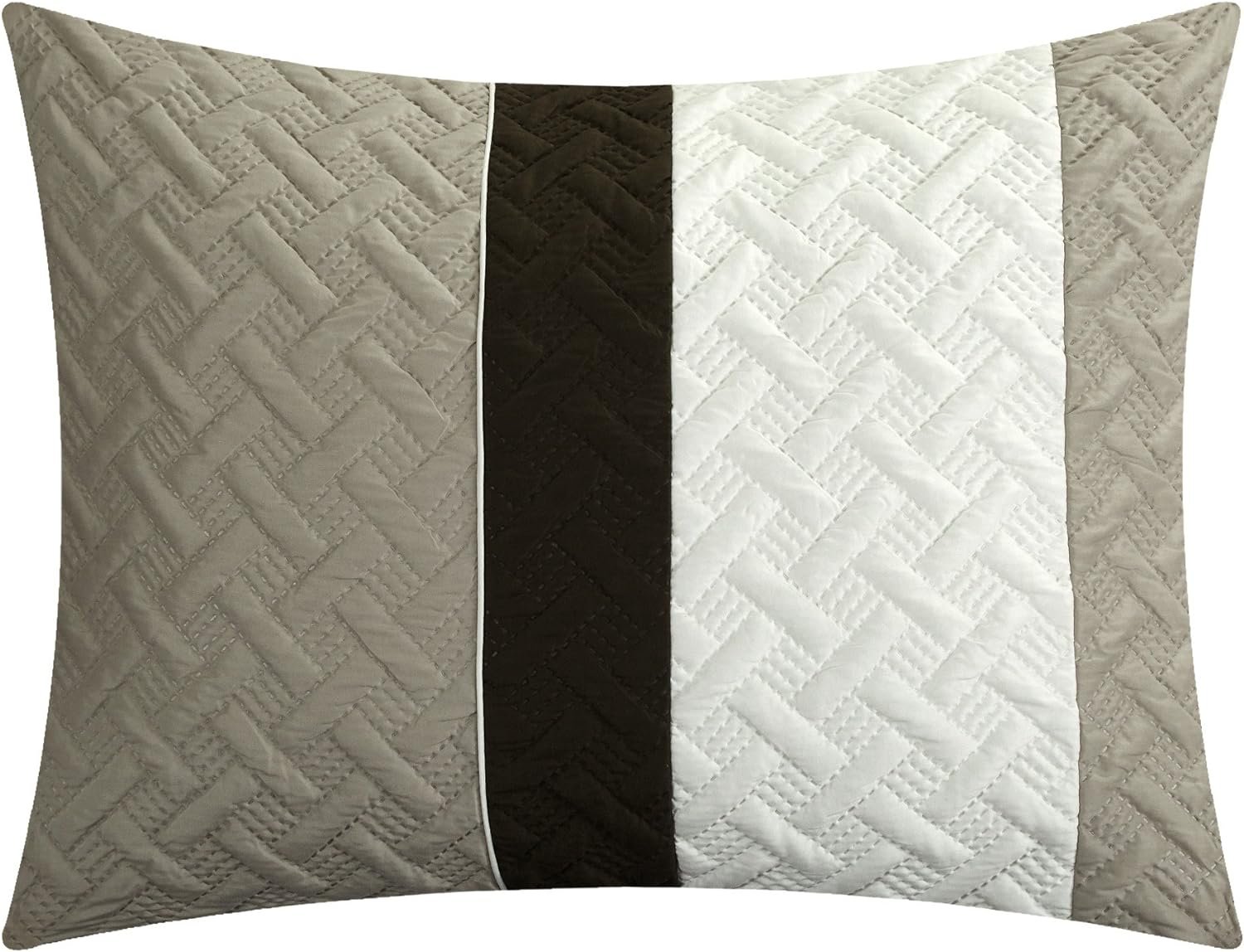 COLOR BLOCK DESIGN – Fashion forward color block design with detailed quilted embroidered stitching – Color and design coordinated embellished decorative pillows and shams included
