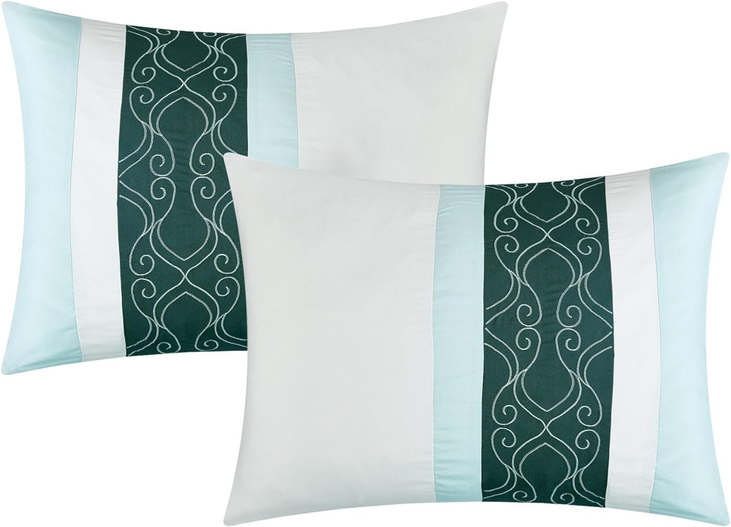 An elegant fashion forward bedding collection with everything you need for a complete bedroom décor makeover. Elegant and sophisticated technique with quilted embroidery and medallion pattern print. Super-soft microfiber sheets, design coordinated shams, trendy deco pillows and window treatments are included to complete the look. Specifications: Size: Queen Color: Green Piece Count: 20 Set Includes: 1pc Comforter (90” x 92”) 1pc Bed Skirt (60” x 80” + 14”) 1pc Fitted Sheet (60” x 80” x 12”) 1pc Flat Sheet (90” x 102”) 2pc Pillowcase Set (21” x 27” + 3”) 2pc Shams (20” x 26” + 2”) 1pc Decorative Pillow (18” x 18”) 1pc Decorative Pillow (12” x 18”) 4pc Window Panels (40” x 84”) 2pc Valances (84” x 18”) 4pc Curtain Tiebacks (3” x 18”) Shipping Dimensions (approx.): L 20″ x W 20″ x H 13″ Materials: Brushed microfiber fabric, Synthetic down alternative filling Fabric and Design: Silky soft brushed microfiber material Fashion forward technique with quilted embroidery and medallion pattern print Features: Luxuriously soft feel for a great night sleep with less tossing and turning Hypoallergenic down alternative filling is perfect for those allergic to traditional down Built to last with premium fabrics and expert stitching Care Instructions Dry clean preferred. Machine washable, use front loader machine (or top loader without agitator) to avoid tearing, use cold water on gentle cycle, tumble dry low * Add 2 tennis balls to the dryer to speed up drying and add fluffiness The digital images we display have the most accurate color possible. However, due to differences in computer monitors, we cannot be responsible for variations in color between the actual product and your screen.