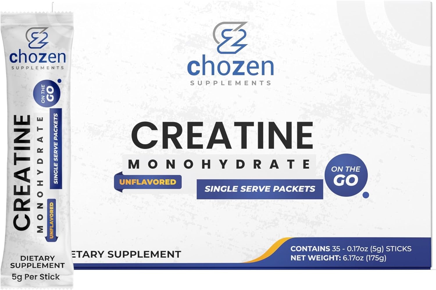 ChoZen Supplements Creatine Monohydrate Powder – 5g (5000mg) | Single Serve Packets | 35 Stick Packs | Keto Friendly | Vegan