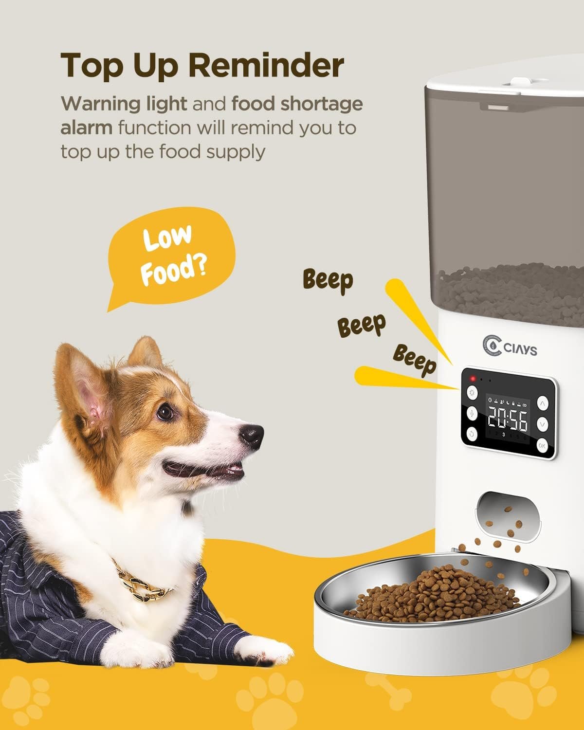 6 PERSONALIZED FEEDING TIMES- Customize your pet’s mealtimes and portions with an automatic pet feeder. Program up to 6 personalized healthy routine meals. Your pet will learn the routine of going to the feeder for food instead of going to you.