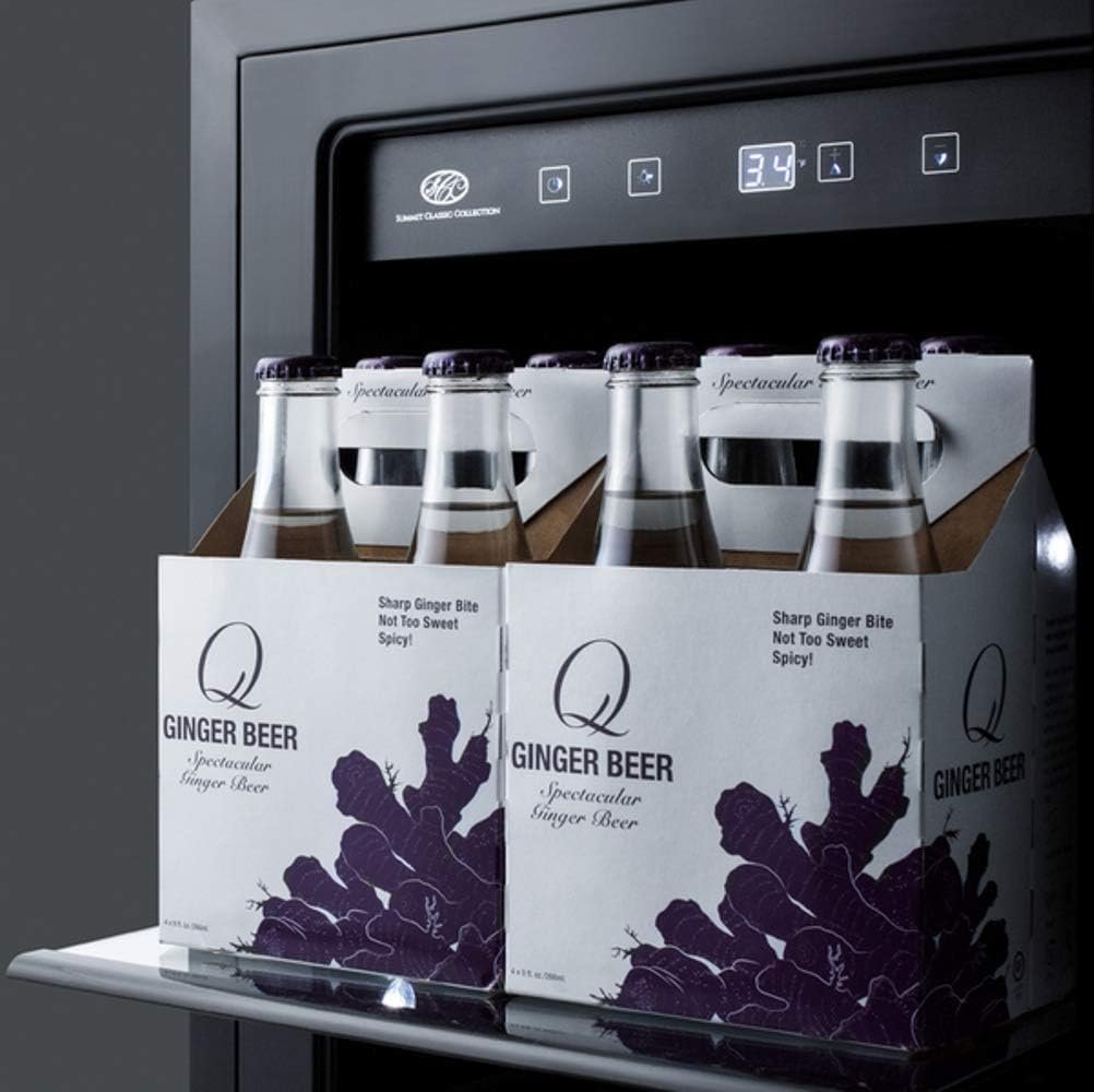 SPECIFICATIONS Overview Height of Cabinet 34.0″ (86 cm) Width 17.5″ (44 cm) Depth 23.5″ (60 cm) Depth with Handle 25.38″ (64 cm) Depth with door at 90° 39.63″ (101 cm) Capacity 2.9 cu.ft. (82 L) Defrost Type Automatic Door Glass Cabinet Black US Electrical Safety ETL Canadian Electrical Safety ETL-C Sanitation ETL-S Energy Usage/Year 255.0kWh/year Amps 1.0 Voltage/Frequency 115 V AC/60 Hz Weight 88.0 lbs. (40 kg) Shipping Weight 100.0 lbs. (45 kg) Parts & Labor Warranty 1 Year Compressor Warranty 5 Years UPC 761101053462 Refrigerator Features Sabbath Mode Yes Door Swing Reversible Reversible Yes Shelf Type Glass Shelf Qty 3 Adjustable Shelves Yes Thermostat Type Digital Fan Type Interior and Exterior Refrigerant Type R600a Refrigerant Amount 0.85oz. High Side PSI 270.0 Low Side PSI 105.0 Interior Light Yes Temperature Range 36 to 43ºF Dimensions Interior Height 23.0″ (58 cm) Interior Width 12.25″ (31 cm) Interior Depth 17.5″ (44 cm) Compressor Step Height 3.25″ (8 cm) Compressor Step Width 12.25″ (31 cm) Compressor Step Depth 5.25″ (13 cm) AVAILABLE UPGRADES Exterior LHD – Left hand door swing Door reversal to left hand swing Latch – Factory-installed door latch requires manual release to open unit Door latch requires manual release to open door. Ideal for yachts, RVs, coach buses, and other vehicles. Door T1 Door Tint Tinted door in low-E mirror finish for maximum energy savings T2 Door Tint Tinted door in reflective deep blue finish with high energy savings T3 Door Tint Reflective door tint in light blue finish for medium energy savings T4 Door Tint Neutral door tint in light smoke finish for moderate energy savings T1S Door Tint Reflective door tint in dark smoke finish for maximum energy savings FEATURES Built-in capable Make the best use of space by installing your appliance under the counter Double pane tempered glass door Heat-safe glass ensures your items are stored safely Seamless stainless steel trim One-piece stainless steel door frame offers a luxurious look with no exposed seams or holes Digital thermostat Electronic controls for precise temperature management Digital display Temperature readout can be shown in Celsius or Fahrenheit Adjustable glass shelves Spill-proof glass shelves make it easy to store and display bottles and cans Bottle slots Floor is specially slotted to store wine and other bottles safely in place White LED lighting Unique white lighting located inside the walls offers elegant illumination for the jet black interior Professional handle Vertically mounted handle in brushed stainless steel Reversible door User-reversible door swing allows for more flexibility in placing the unit Stainless steel kickplate Completes the professional look down to the toe kick Sabbath Mode Optional setting lets you disable the lighting and alarm for up to 48 hours Temperature alarm Audibly alerts if the interior temperature is too warm Open door alarm Audible alarm will sound if the door is left ajar for over 60 seconds Fan-forced cooling Internal fan ensures the interior is evenly cooled from top to bottom Automatic defrost Reduced maintenance and steady temperature performance Sealed back Space saving design with easier cleanability Temperature Memory Function Unit will retain its last settings when power is restored in the event of power loss Right angle plug Design allows you to plug the unit in flush against the wall socket with no need to add extra depth Fully finished black cabinet Allows the unit to be used freestanding Integrated hinge Top hinge adds no additional height or width when the door is opened Commercially approved ETL-S listed to NSF-7 standards 100% CFC Free Environmentally friendly design with no ozone-damaging chemicals CARB Compliant Environmentally friendly hydrocarbon-based refrigerant for a greener footprint that meets current CARB regulations DESCRIPTION The SUMMIT Classic Collection features deluxe undercounter appliances designed to bring modern luxury into the home. The CL181WBV is an 18″ wide beverage center. The front breathing design allows built-in installation under counters, while the fully finished cabinet in a jet black finish also enables freestanding use. The seamless stainless steel door trim blends right into the softly tinted double pane tempered glass, with a professional stainless steel handle and designer kickplate completing the stunning look. Inside, white LED lighting located on the side walls complements the black interior for an attractive presentation. The CL181WBV includes three adjustable glass shelves for spill-proof storage. The floor is specially slotted to hold wine bottles in place. The interior control panel includes a digital thermostat for easy and intuitive operation, with a readout viewable in Celsius or Fahrenheit. Additional features include a user-reversible door, right angle plug for added space savings, sealed back design for easier cleanup, and a Sabbath mode setting. A built-in alarm audibly warns if the door is left ajar or if the unit exceeds recommended temperature. Uniquely styled and fully featured, the CL181WBV brings true luxury to small kitchen spaces. DOWNLOADS BROCHURE w/ DRAWINGS CL181WBV.pdf TECHNICAL DRAWING (.dwg) CL181WBV_BEVERAGE_REF__A-C_2000_.dwg USE & CARE CL181WBV_Manual_3-29-2019.pdf MSDS INFORMATION R600a_K.pdf