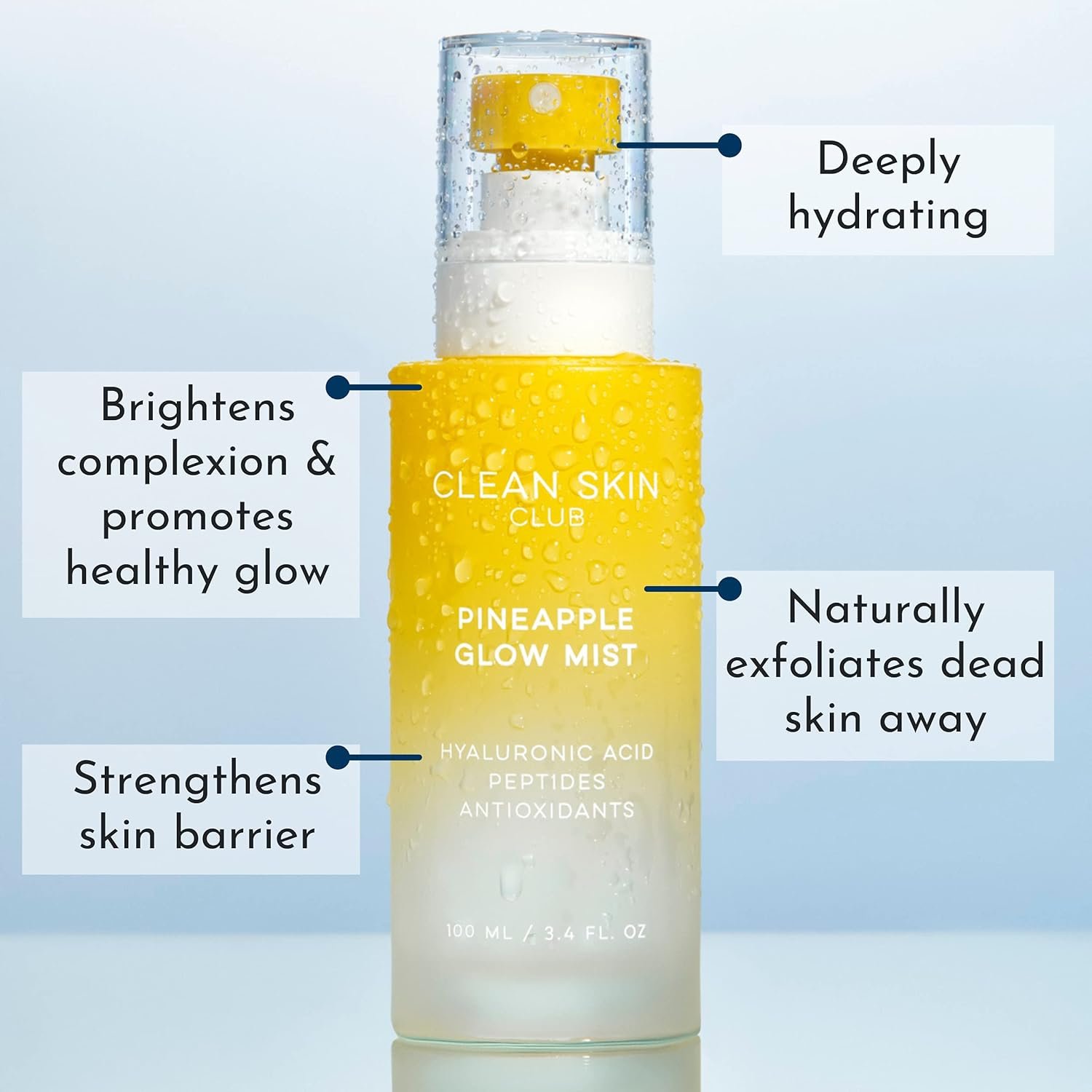 🍍 How to use The Pineapple Glow Mist can be used any time of day, but should always be applied to clean skin. It can be misted directly onto the face and neck, or, can be misted onto a Clean Towel before drying your face. For both AM and PM use, the Pineapple Glow Mist should be applied immediately after cleansing, and before serums, moisturizers, and SPF.