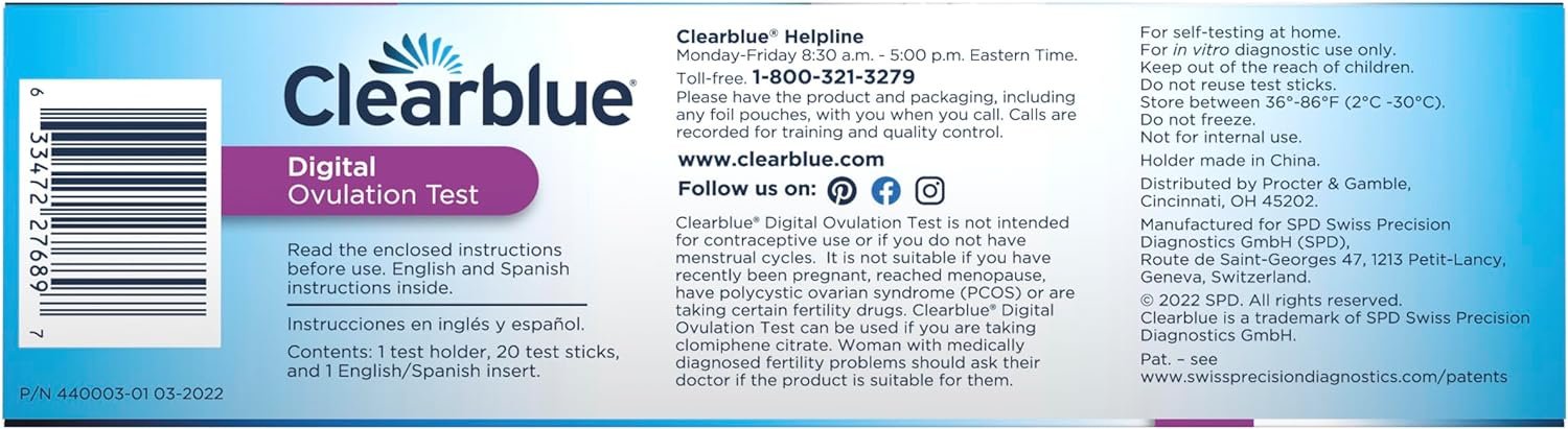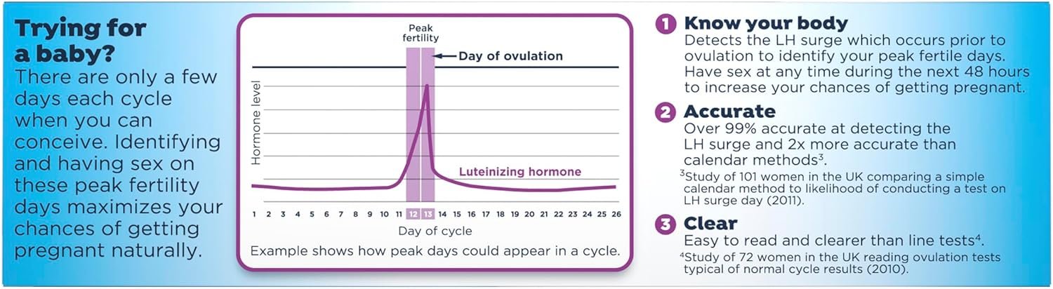 Trying for a baby? Get pregnant faster (1). The Clearblue Digital Ovulation Test (Prueba de Ovulacion Digital) identifies your 2 best days to get pregnant each cycle. The simple urine ovulation test is over 99% accurate at detecting the luteinizing hormone (LH) surge. The ovulation test interprets your result and gives you a clear smiley face in the digital display when the LH surge has been detected, so you know this day and the following day are your 2 best days to try for a baby.