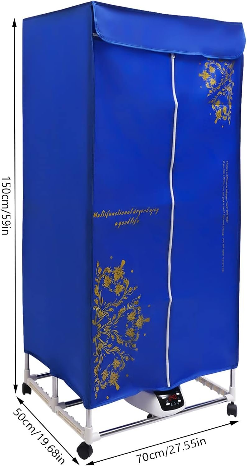 【Time Adjustable & Touch Screen Control】Thoughtful Design: You can set the drying time (60/120/180/240min) according to the different clothes without the need to be around all the time. The universal wheels( two of them has brakes) make it easy for you to move and fix the product.You can use the touch screen to control the switch and timer function, enjoying a smart drying life.