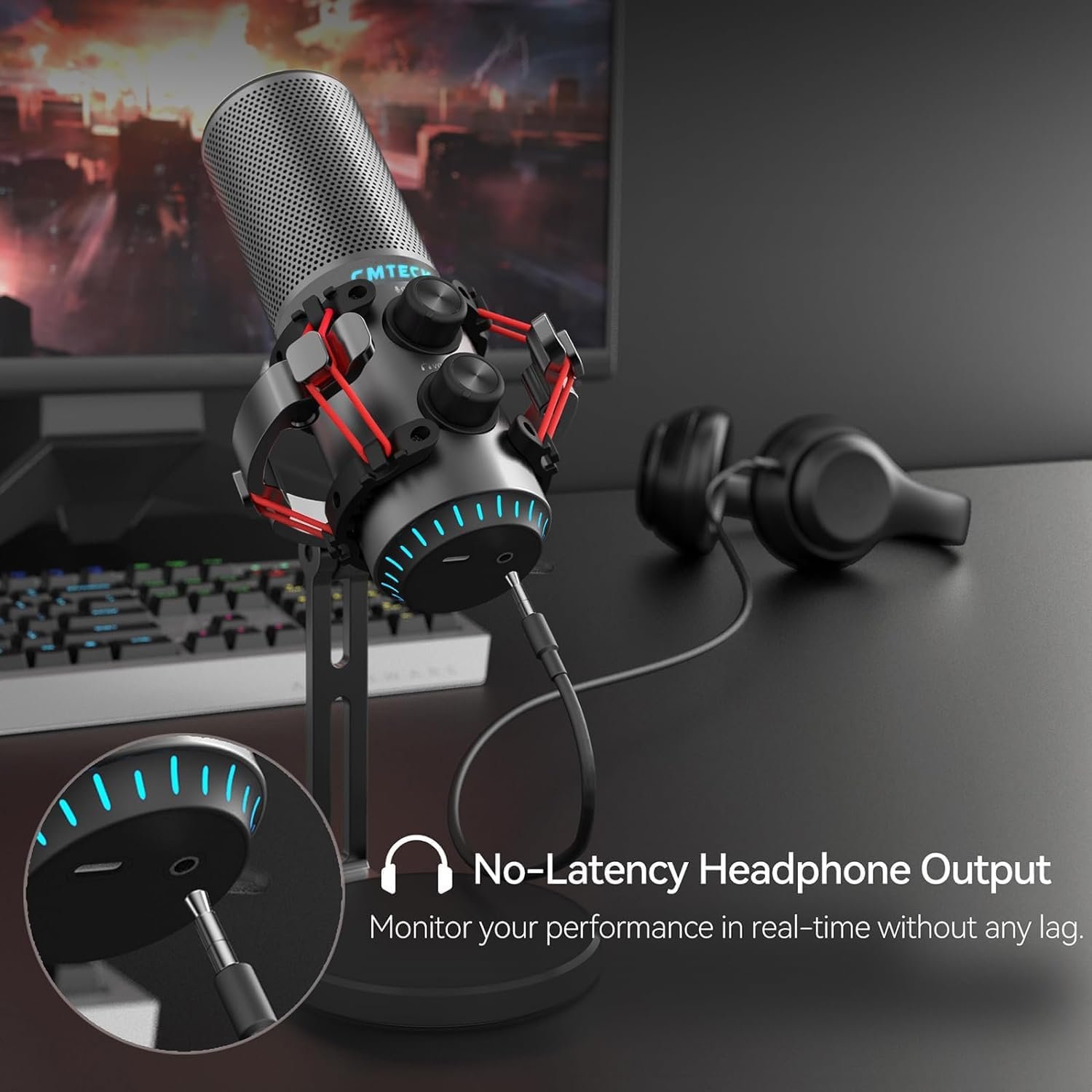 Zero Latency Monitoring – Equipped with a 3.5mm headphone jack, you can monitor your voice in real-time. Additionally, a microphone gain control knob allows you to easily adjust the microphone volume and sensitivity, ensuring optimal sound quality.