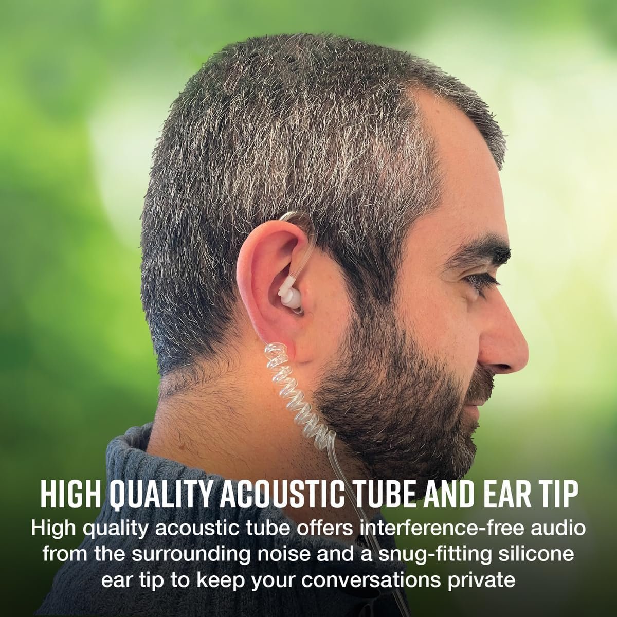 High Quality Headset – Acoustic tube offers sound without interference from surrounding noise; more accurately conveying the human voice. Earbud fits snugly in the left or right ear with silicone ear tip keeping your conversations private.