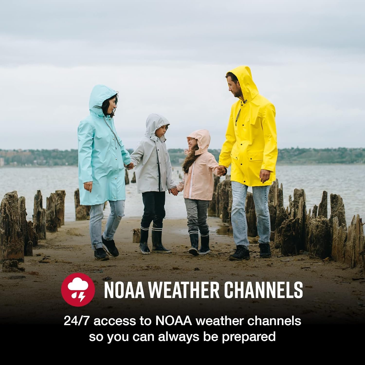 NOAA Weather Channels – Get 24/7 access to NOAA weather channels so you can always be in the know when it comes to unexpected changes in the weather. Patented Vibralert feature enhances strength of notification so you never miss an alert.