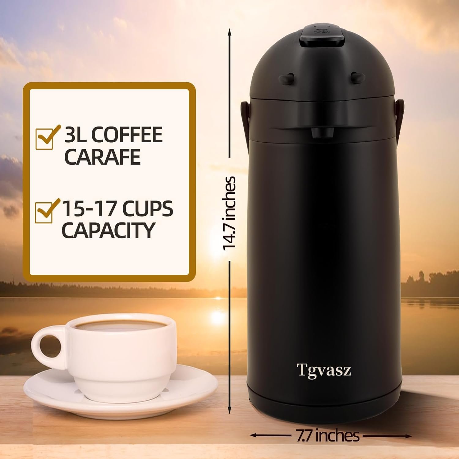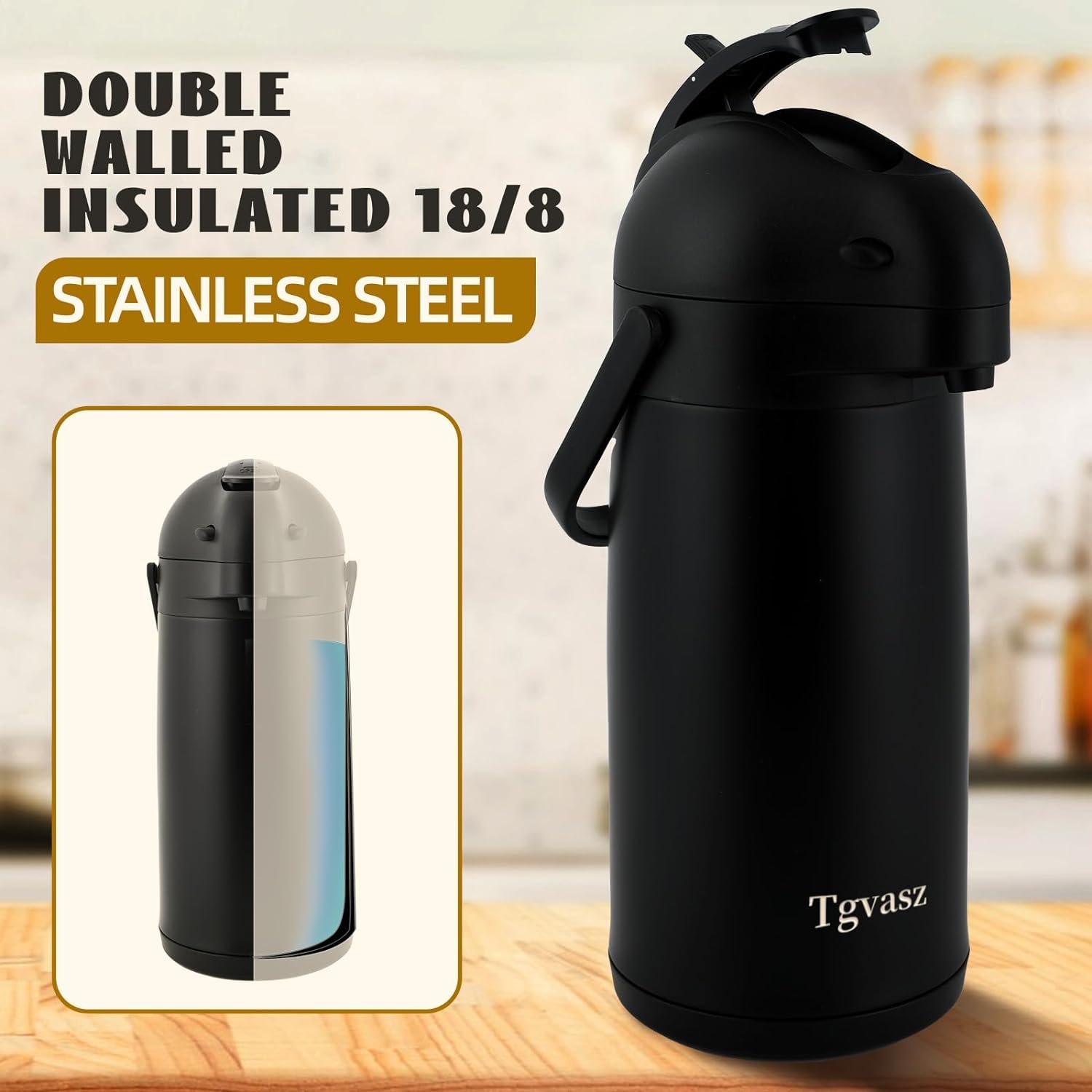 PREMIUM QUALITY & DURABLE TERMOS PARA CAFE >>>> Our coffee dispenser is made from imported high quality 304 stainless steel, this coffee carafe are rust-proof and non toxic, Perfect for hot and cold beverages, such as coffee, tea, milk, juice, water and more…