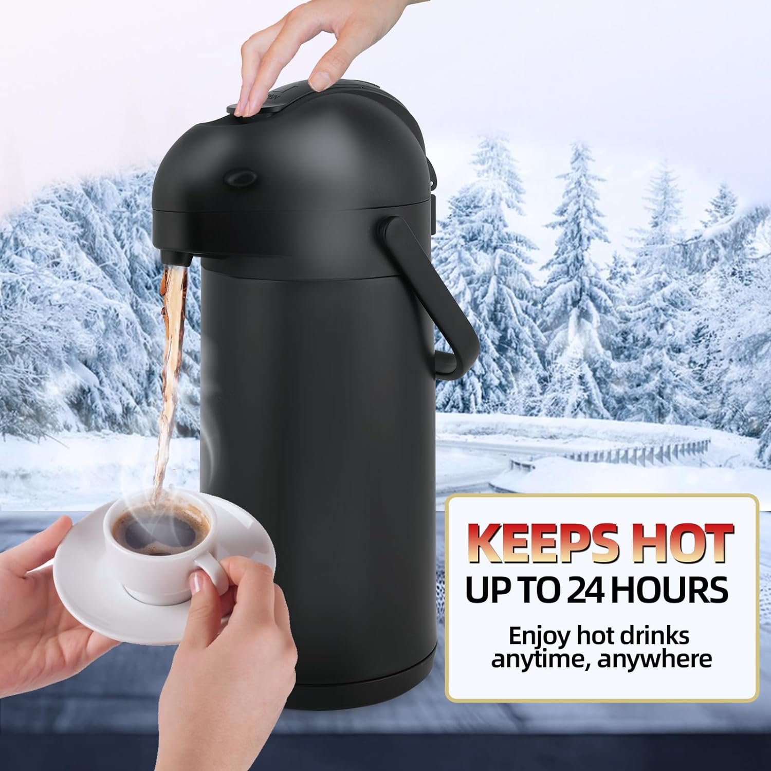 12HR HOT & 24HR COLD COFFEE THERMOS >>>> Our hot water dispenser uses advanced double-wall vacuum insulated technology to lock in temperature for 12 hours hot or 24 hours cold. This 3 Liter capacity makes the large thermos for hot drinks perfect for cafes,Ideal used for bedside, restaurant, office, party, camping, travel sports games insulated coffee carafes