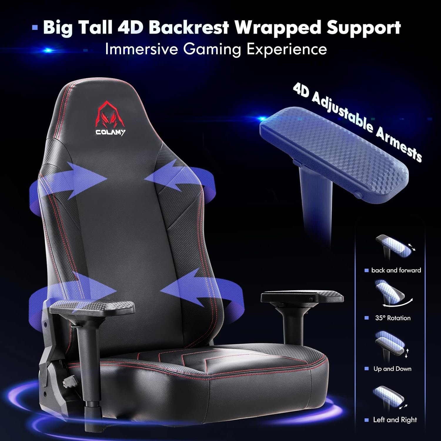 ⏩ EXTRA LARGE, EXTRA COMFORT–Specially designed for the big and tall person, supports up to 400 pounds. Ergonomically designed with an enlarged backrest and thick seat (seat size: 20.08D” X 20.87W”, 5.91″ Thick) that gently wraps around your body to create full body immersion. A first class seating experience allowing you to stay comfortable during long hours of work, study, or gaming