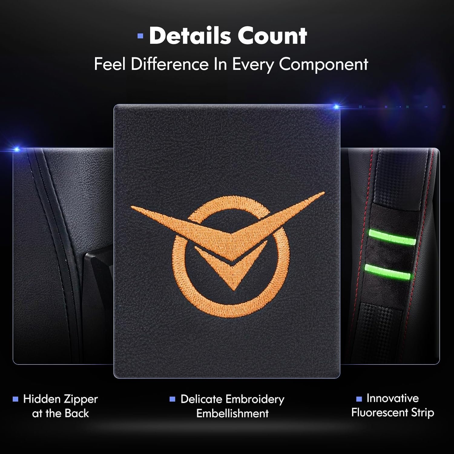 HIGH-END MATERIALS: COLAMY computer chairs with footrest are upholstered in sweat-proof PU leather, offering an exceptional tactile experience. This high-quality material of computer chair for heavy people is not only more breathable and durable than traditional PU leather but also adorned with attractive embroidered and embossed logos, invisible back zipper, creative affixed cloth embroidered design,3D adjustable arms, retractable footrest, making our racing chair both eye-catching and stylish.