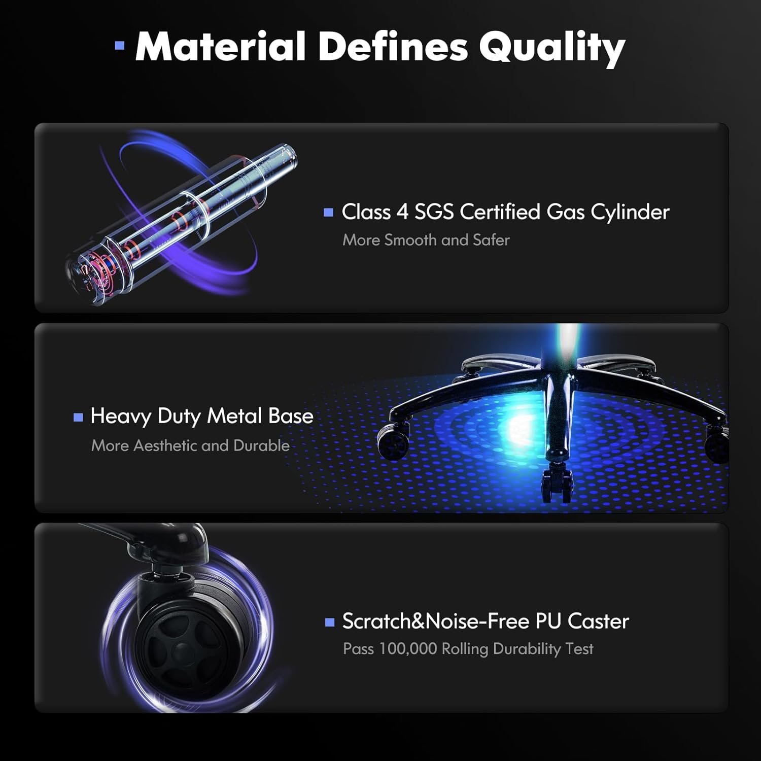 CERTIFIED COMFORT, INVEST IN QUALITY: Our gaming chair features a Class 4 gas cylinder, certified by SGS, ensuring top-notch safety and durability. Each component is carefully chosen and rigorously tested over 100,000 times, promising reliability and a maximum capacity of up to 350 lbs. With BIFIMA certification, you can trust in the sturdy construction and superior quality. Experience the difference and enjoy worry-free use every day.