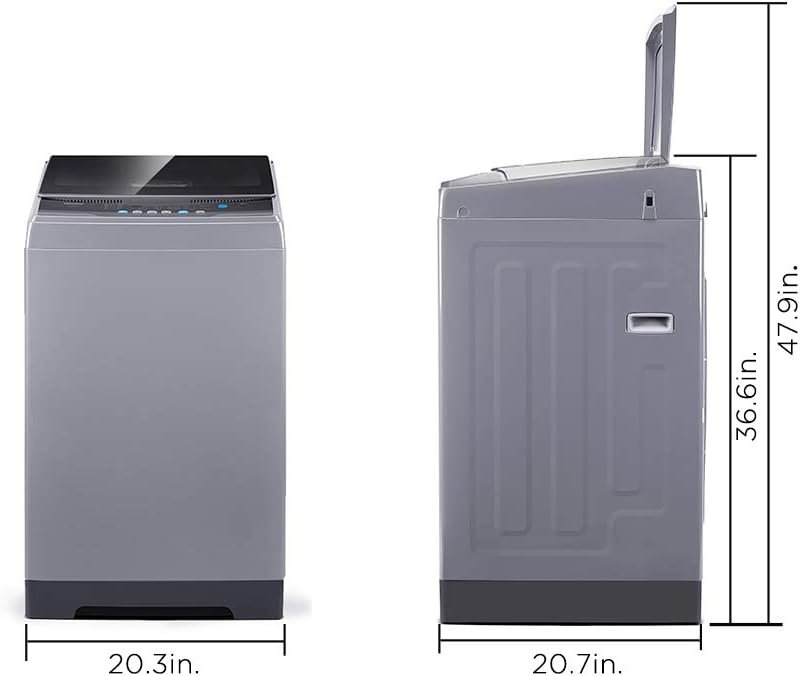 Product 1: Space saving: – With only 20.7inch in width, 20.3inch in-depth, and 36.6inch in height, this compact washer is able to be stored easily. Fits in your room/RV/dormitory nicely. The large capacity of 1.6cu.ft top load washer can hold 11lbs of cloth. It equips with a stainless steel inner tub which lasts longer.
