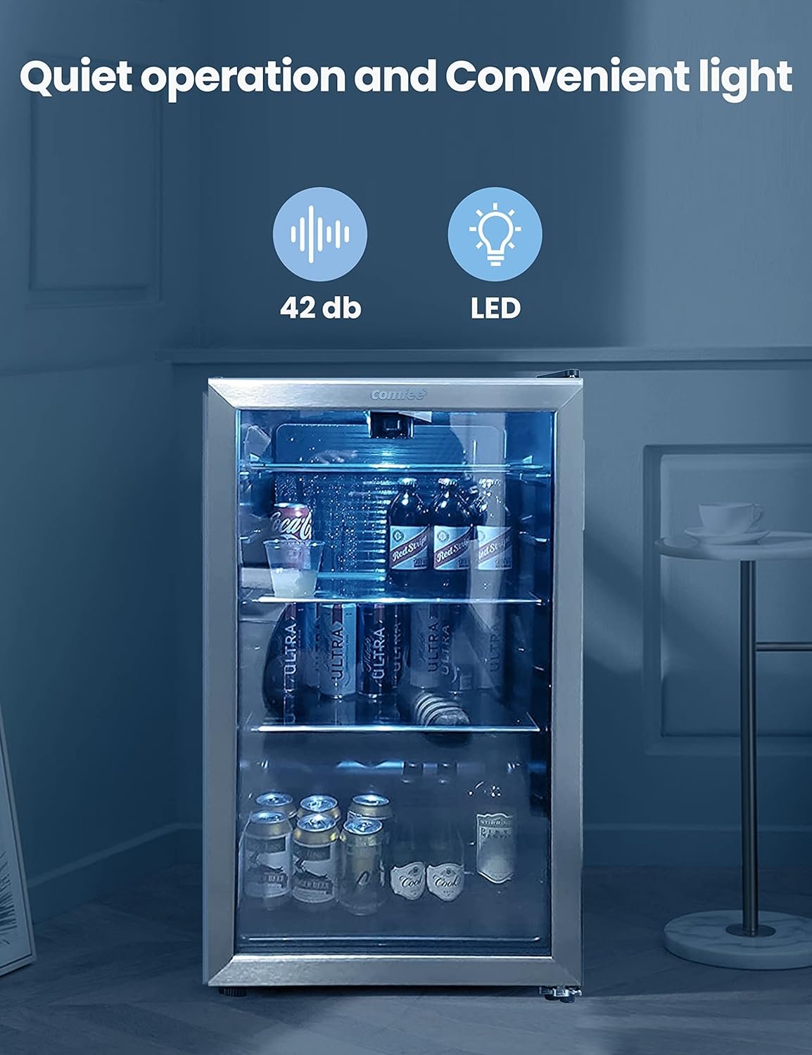 KEEPS DRINKS COOL FOR AS LONG AS YOU’D LIKE – Free up space in your full-sized refrigerator by storing your drinks in the Comfee’ beverage cooler; It will keep your drinks as cold as you want them for as long as you need!