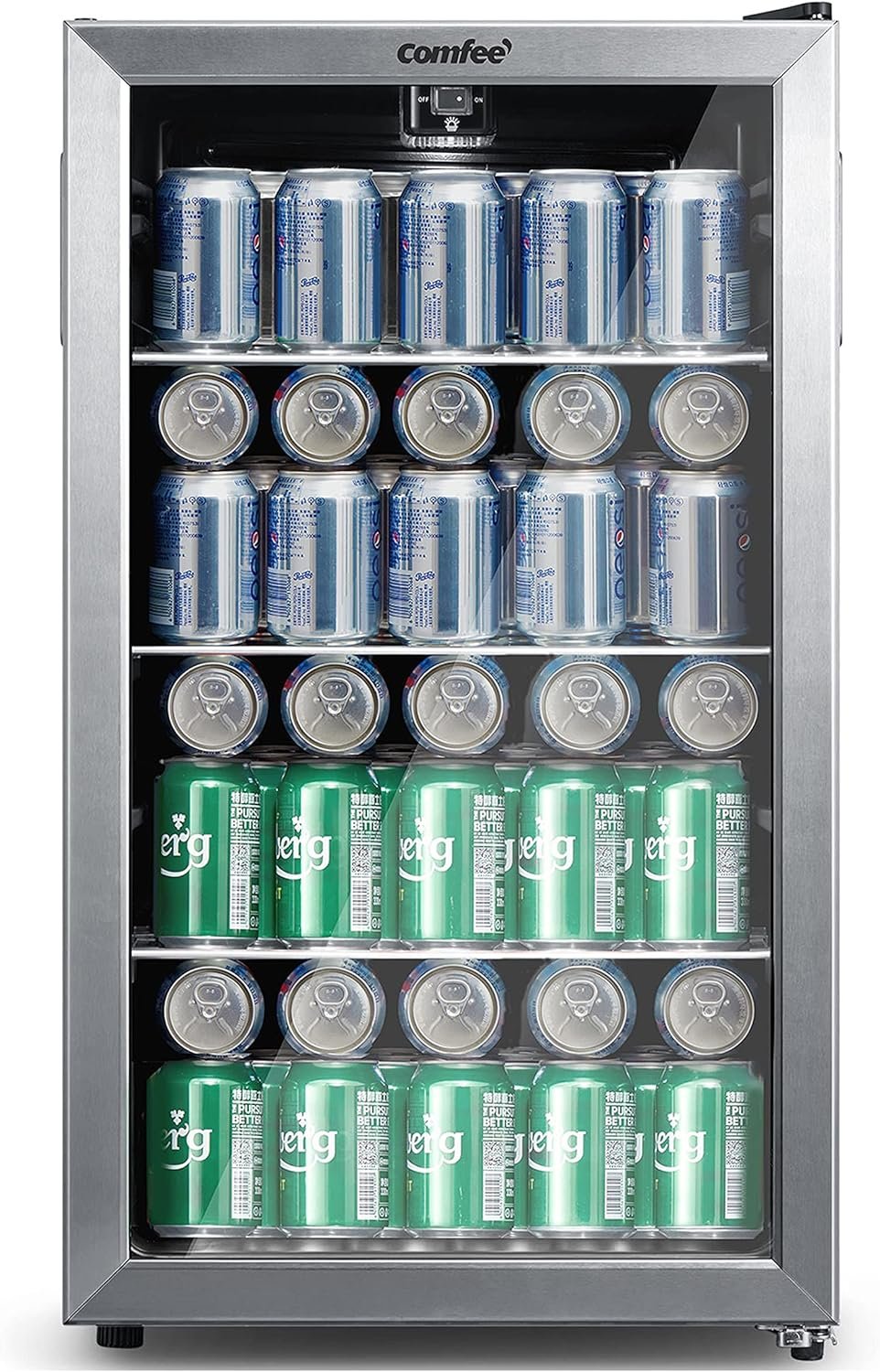 COMFEE’ CRV115TAST Cooler, 115 Cans Beverage Refrigerator, Adjustable Thermostat, Glass Door With Stainless Steel Frame, Reversible Hinge Door And Legs For Home, Apartment
