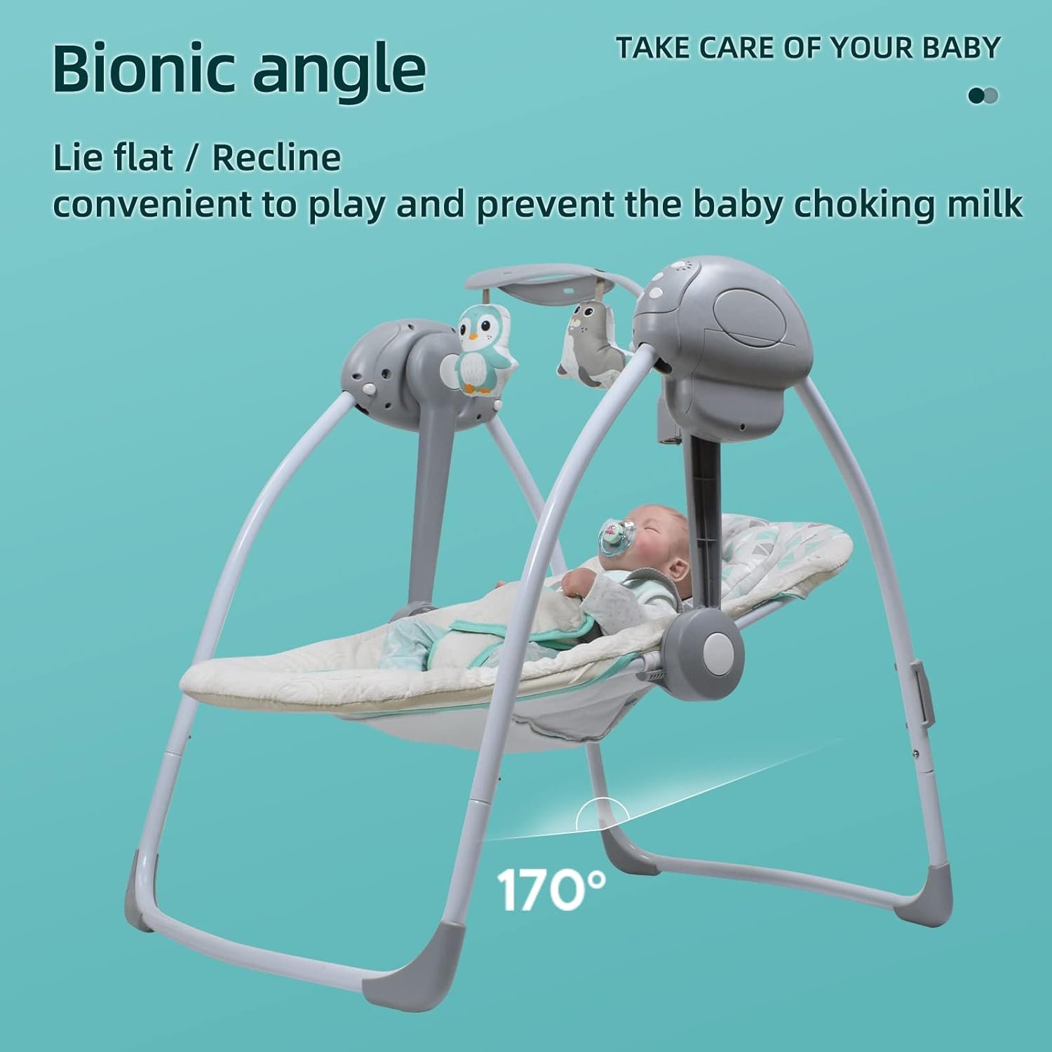 [Two Modes]170 degree spine protection mode, scientific spine protection, baby sleeps more comfortably; 150 degree play mode is convenient for playing and prevents babies from choking milk