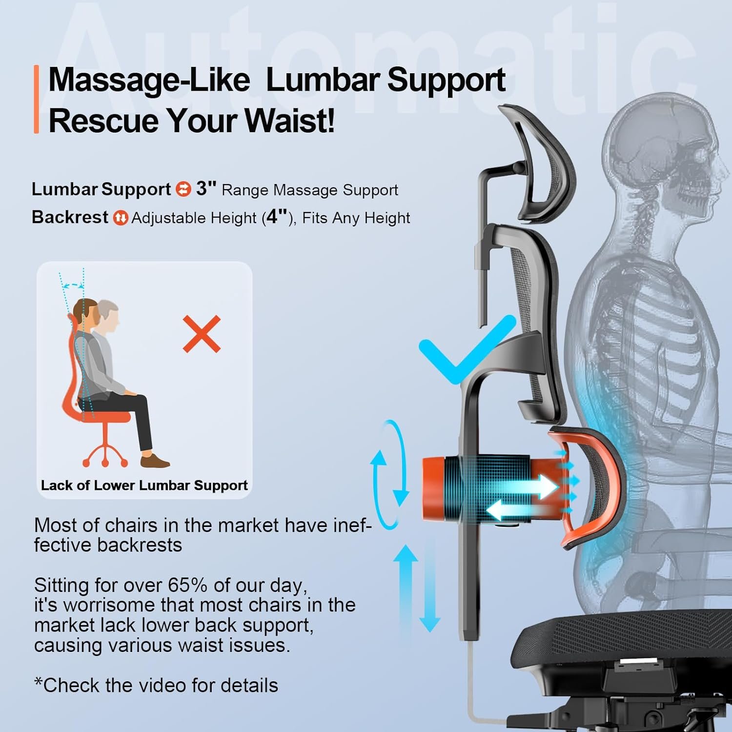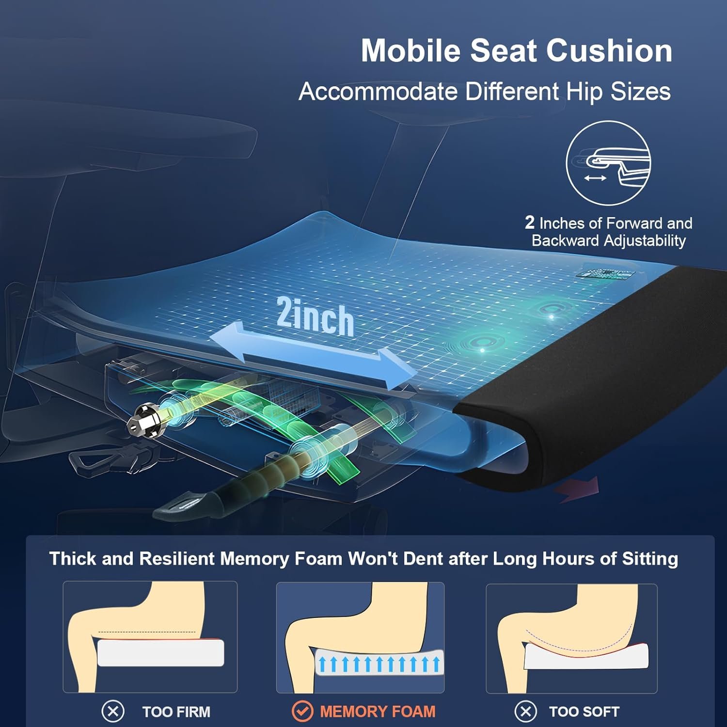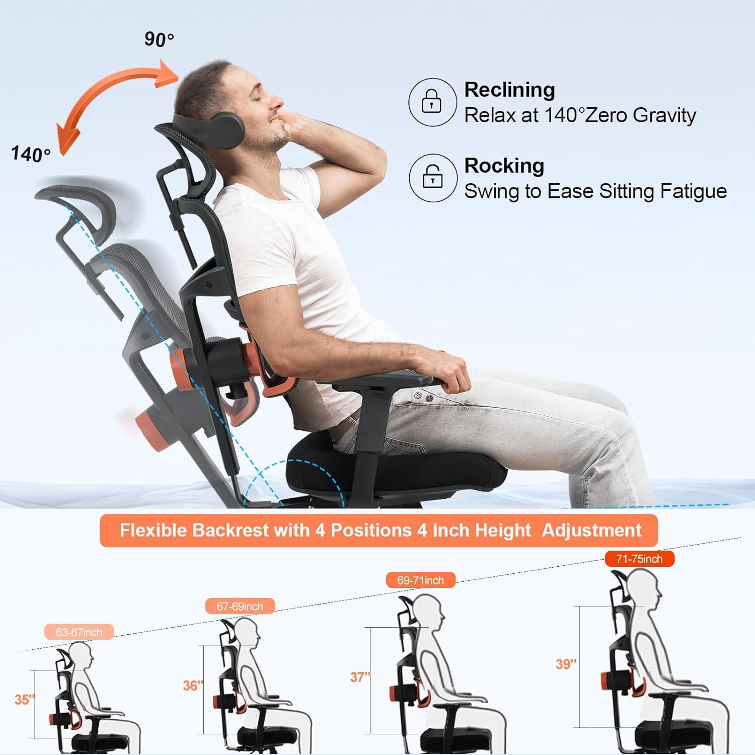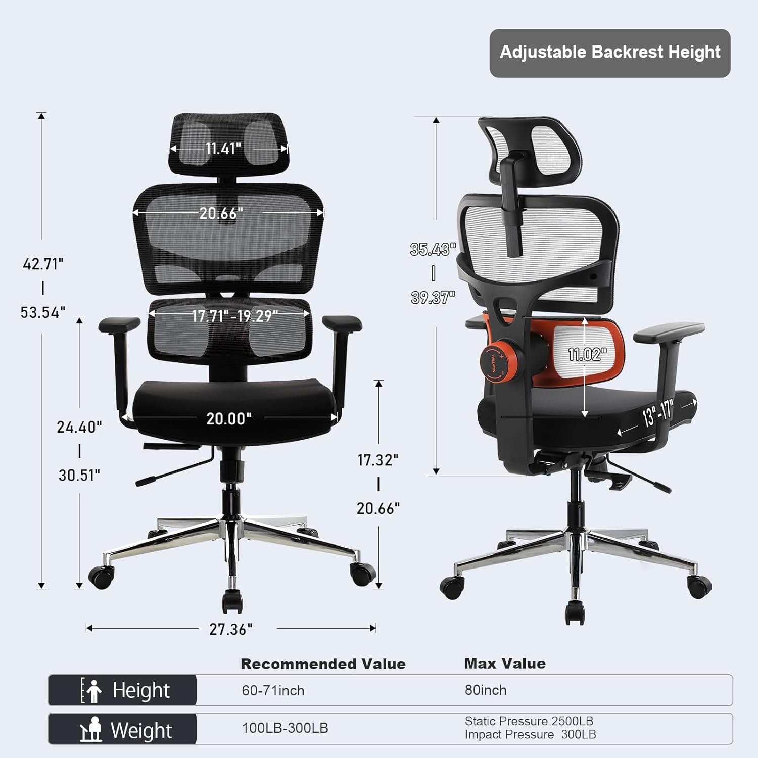 Ergonomic Office Chair: The high-density mesh is resistant to abrasion for long-term use. Full mesh backrest promote air flow, the breathable material creates a comfortable working environment for you. Meanwhile, this office chair designed with adjustable headrest and comfortable lumbar support, which is more ergonomic.