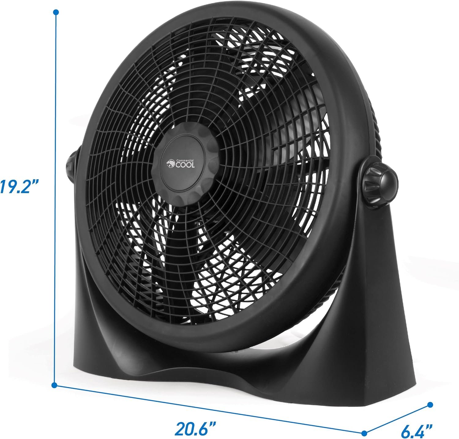 Enjoy cool, free-flowing, luxurious air with this outstanding COMMERCIAL COOL floor fan. Pick from three speeds on your new home floor fan so you get the cooling atmosphere of your choice: LOW, MEDIUM, & HIGH. Our modern floor fan (20.55″ x 6.38″ x 19.17″) is complete with an adjustment knob, front guard, base, three blades, and double insulation. Use this floor fan quiet (5.5 lbs.) in your garage, office, bedroom, bathroom, basement, or any other room of your choice. Our 3 speed floor fan with 5 ft. power cord allows you to work, sleep, and live comfortable enjoying proper air circulation from the ground up! What could be better? When it comes to floor fans for bedroom, this floor fan black is your top choice. 120V, 60Hz, 52 Watts. Situate the direction of your fan to your choosing with an adjustable tilt head. Now with cool, free-flowing air circulating around the room, you can live your days and nights easier and more relaxed. So next time you’re looking for a cooling floor fan with a durable copper motor, this COMMERCIAL COOL unit is your number one choice.