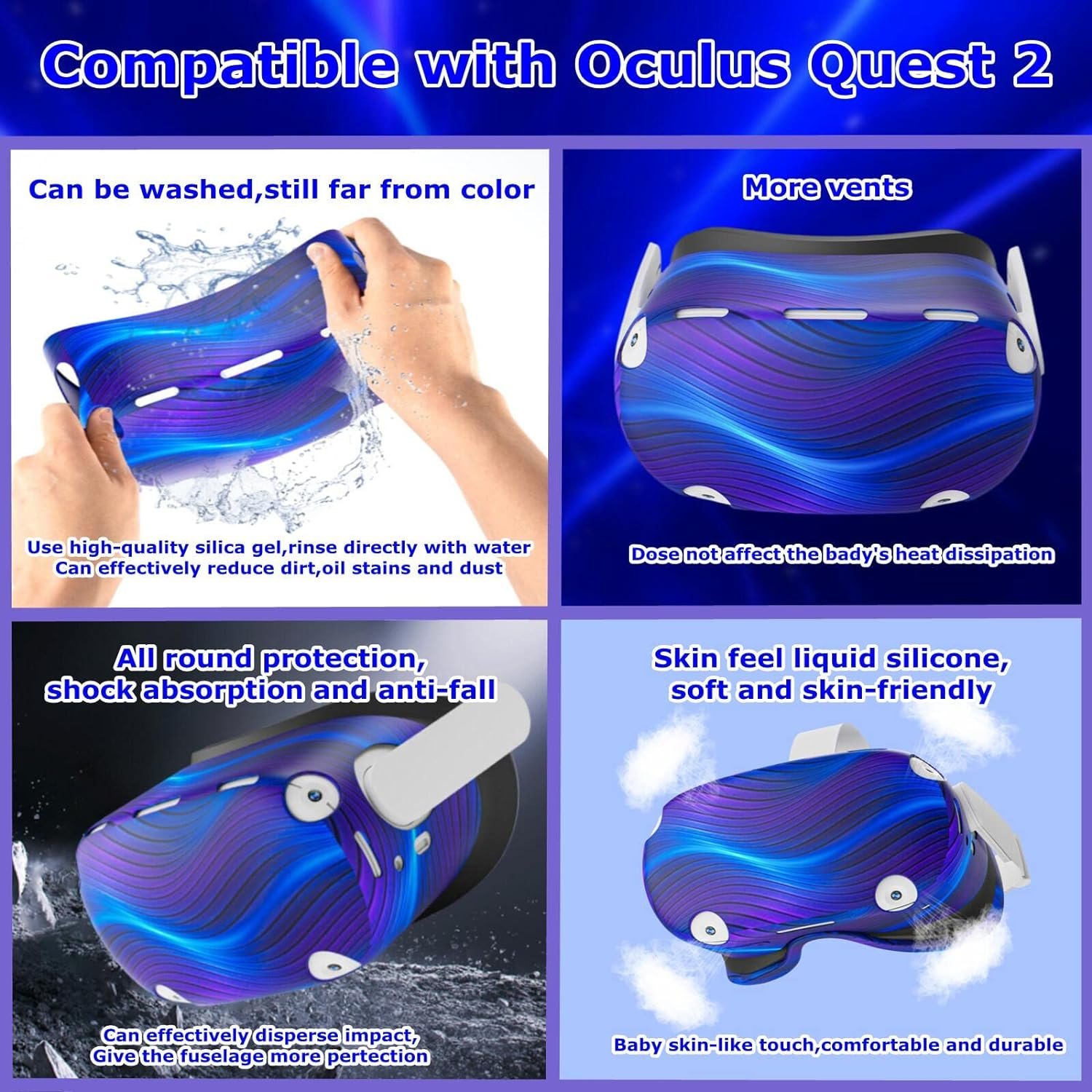 The protective cover Compatible with Oculus Quest 2 is made of silica gel, prevent VR headset from scratches, splashing, minor collisions and dirt and it can be washed in water and dishwasher.