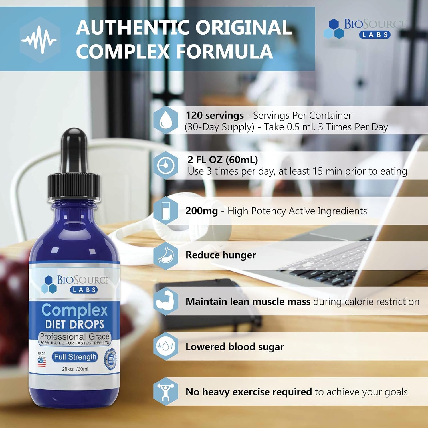 BioSource Labs Complex Diet Drops are a complete diet supplement with the instruction and tools for anyone looking for quick results. By using these drops together with the VLCD (Very Low-Calorie Diet) guide, our customers enjoy weight management benefits without the negative side effects of harsh stimulants. By following the included guidance, this method works for man or woman alike. (*Results are not guaranteed and vary from person to person.)