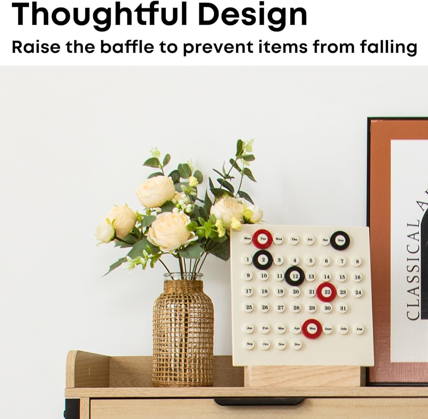 【PLENTY OF STORAGE SPACE】Dimensions: 11.7 inches (D) x 38.7 inches (W) x 31.1 inches (H). It comes with two rattan storage drawers and 2-tier open shelving provides ample storage space for your magazines, glasses books, plants, shoes, boxes or other items. The spacious waterproof table top can place mirrors, table lamps, vases or other decorations to make your living space cleaner and tidier.