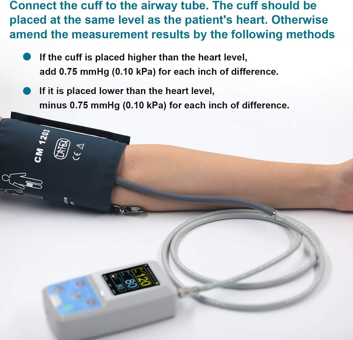 2.Our ABPM50 ambulatory blood pressure monitor comes with one adult cuff.The cuff size is:25-35cm(9.8-13.7inch).