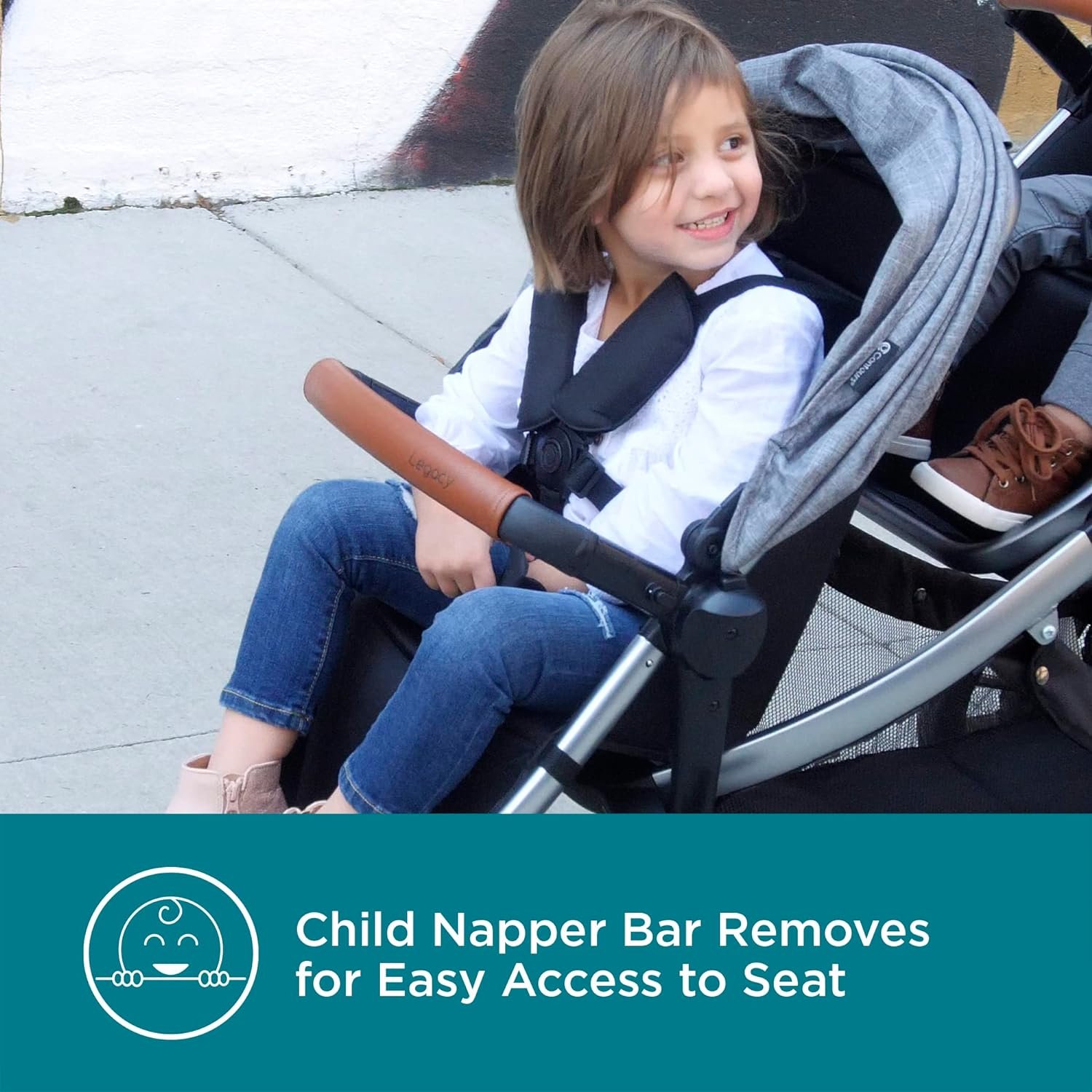 The Contours Legacy convertible stroller can easily grow with your family from single to double stroller just when you need it. Start off with single mode and add a newborn pramette or infant car seat adapter (sold separately) for your littlest one, or simply add the second seat when your family grows to two. And if you have three riders, your oldest toddler can ride on the stand-up boogie board. With over 20 modes to choose from, the Contours Legacy stroller is ready for your family’s unique journey. Luxe details include a leatherette handle for a comfortable grip, a one-touch sandal-friendly rear brake, and the expandable UPF 50+ sun canopy make your strolls comfy and stylish. Accommodates an infant car seat in the upper seating position with the use of an infant car seat adapter (sold separately) to create a travel system for your littlest one. Disney-size approved (any seating configuration) as long as the parent handle is in the uppermost position.
