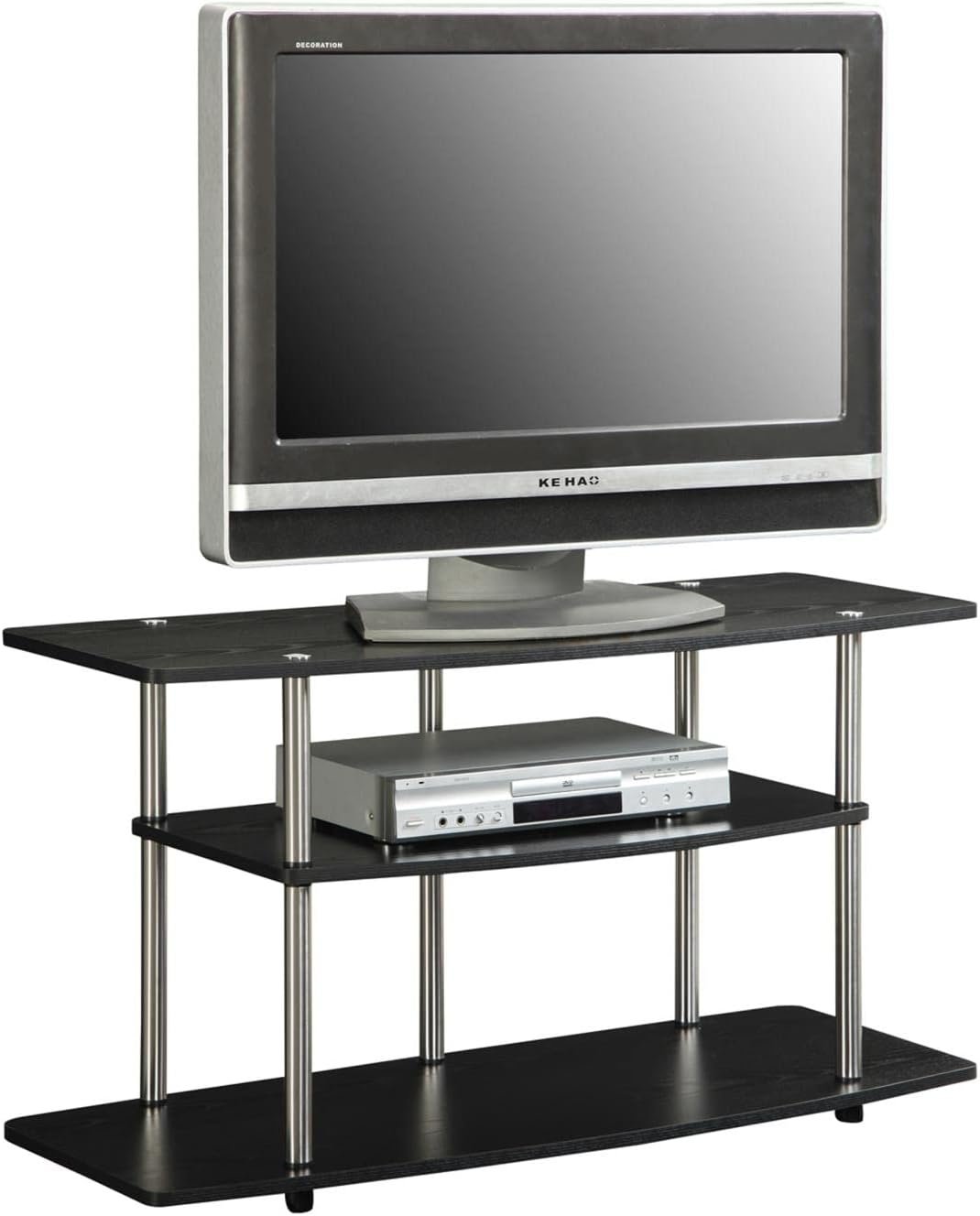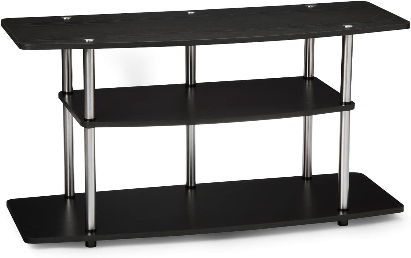 Modernize your space with the Designs2Go No Tools 3 Tier Wide TV Stand by Convenience Concepts. Its open concept design and contemporary style will fit perfectly in your living room or home study. This stand features three wide tiers of shelving that provide ample space for all your entertainment essentials. Each shelf is constructed of particle board and melamine giving this TV stand a lifetime of durability. The shelving is also supported by powder-coated stainless-steel tubes that will not rust while plastic caps with rubber soles cover the bottom to help protect your floors. Assembling this stand is quick and easy with no tools needed. Complete your home look with coordinating pieces from the Designs2Go Collection by Convenience Concepts, each sold separately.