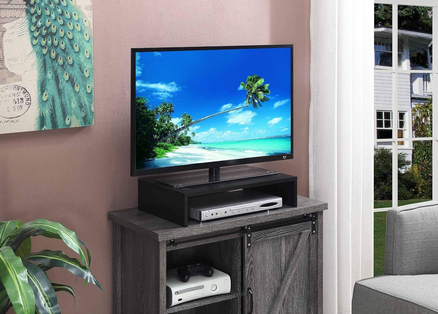Need to add some height to your entertainment center? The Designs2Go Small TV/Monitor Riser for TVs up to 26 Inches by Convenience Concepts will fix this problem! Whether adding height to a TV or computer monitor, this sturdy riser is the solution. Additional underneath space offers room to store a cable box, gaming system, or even a keyboard. This transitional riser is built from particleboard, finished with a smooth melamine veneer, and includes a support bar to help with weight. Assemble in minutes and pair with coordinating Designs2Go TV stands or desks to complete your home look, each sold separately.