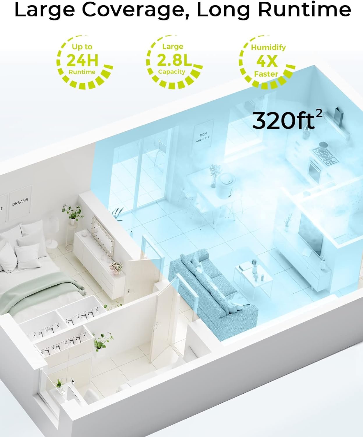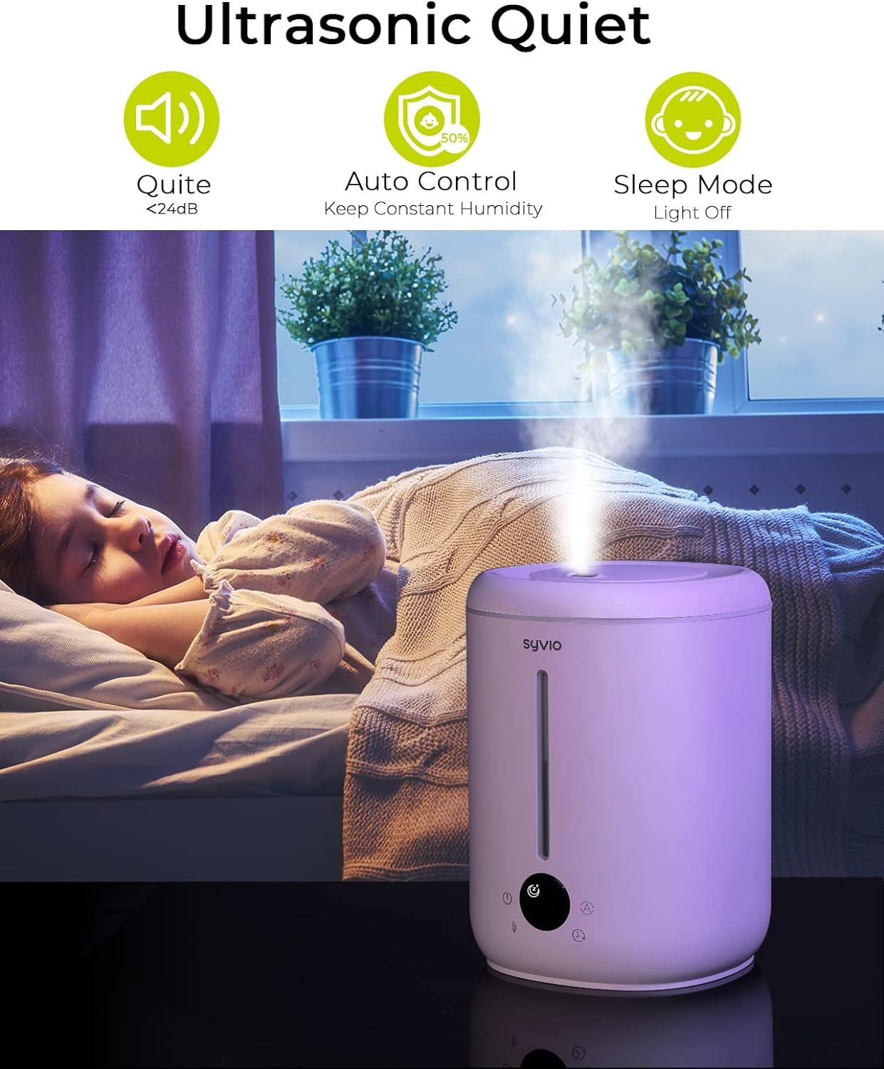 ✅𝗨𝗟𝗧𝗥𝗔𝗦𝗢𝗡𝗜𝗖 𝗖𝗢𝗢𝗟 𝗠𝗜𝗦𝗧 𝗛𝗨𝗠𝗜𝗗𝗜𝗙𝗜𝗘𝗥 – Are You Still Troubled By the Skin Dryness, Congestion, Coughing, Sweating Caused by Air Dryness? Here IS A Savior Against Dry Air! 👏Different from other brands that water tank and the base are separated, Syvio Humidifiers adopt an integrated design for faster humidification, up to 4X faster than others. 2.8L tank, it can continue working up to 24 hours. Cool Mist up to 300ml/hr, it’s perfect for a large room as 30㎡/320sq.ft.
