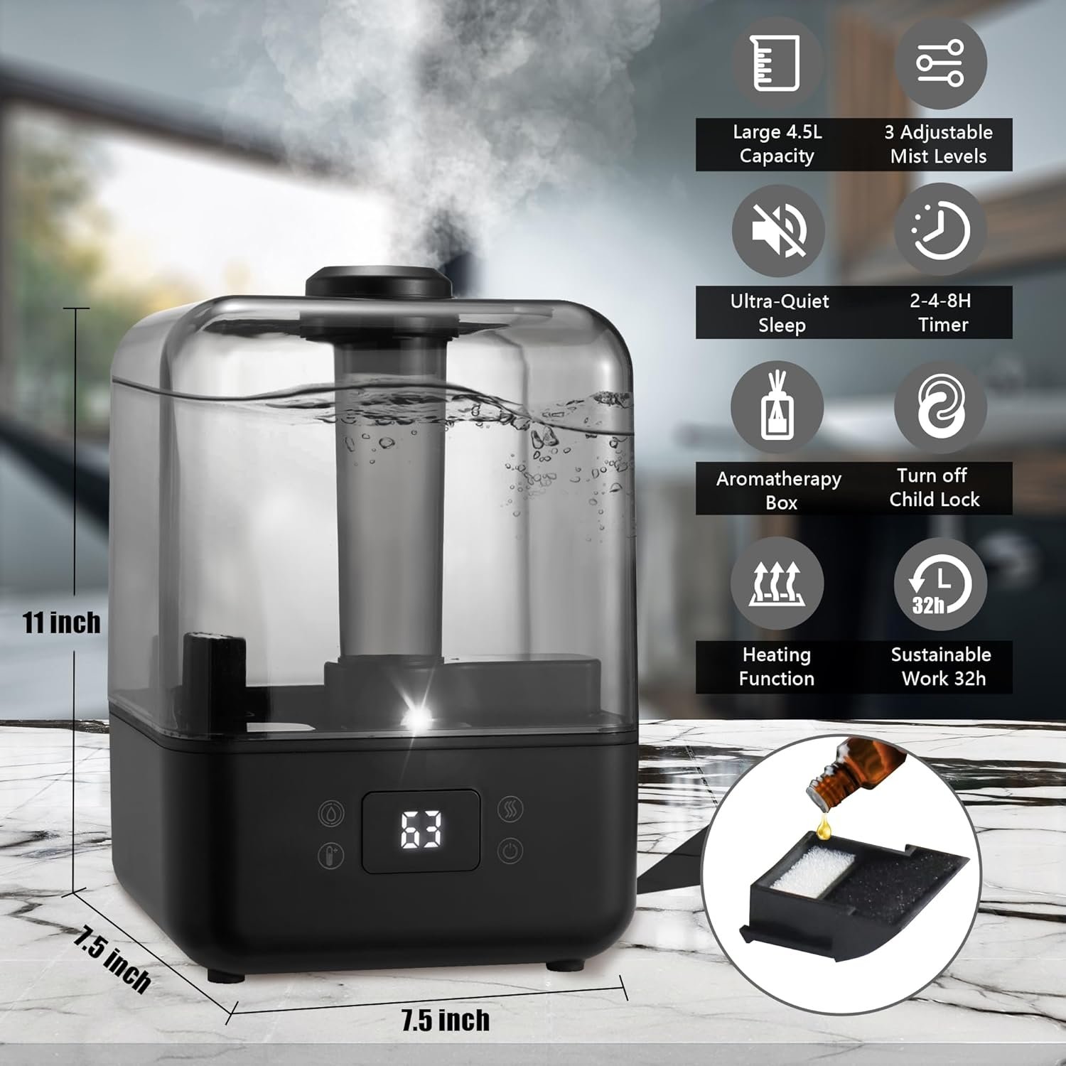 💦【Long-lasting & Auto Shut-Off】4.5L large capacity water tank design, can work continuously for 12-32 hours. You can enjoy a full night’s sleep, freeing you from frequent hydration. It has an automatic shutdown safety device that will shut down when it runs out of water, preventing damage to the unit and ensuring your safety.